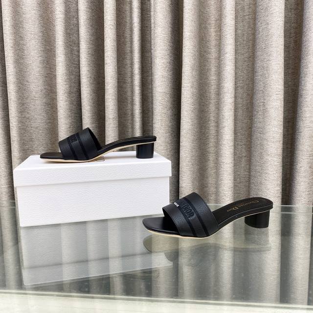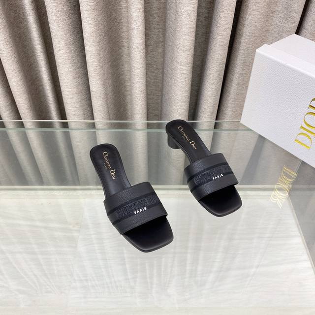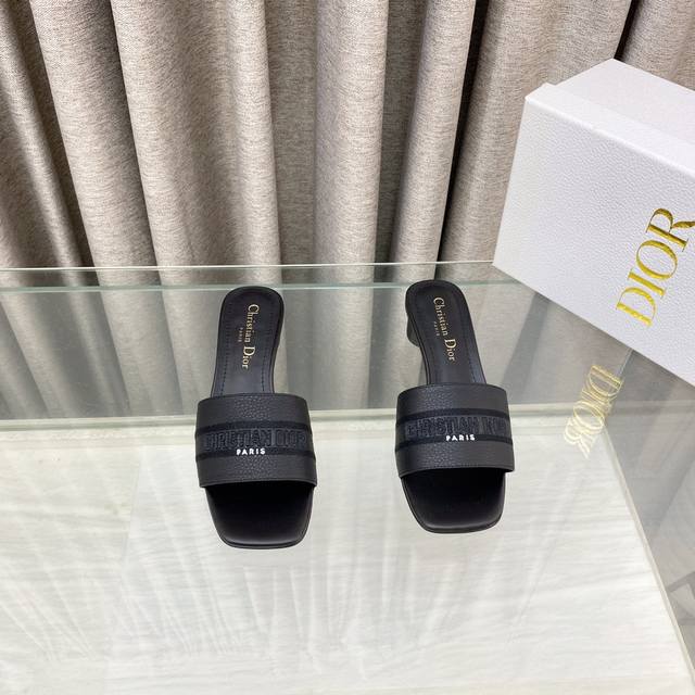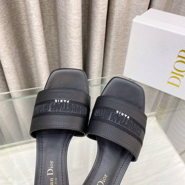 Dior 2025 Spring/Summer new Dway flat flip flops for women in two-tone colors, Cd logo 3D embroidered cylindrical heel sandals, square toe thick heels, jelly-colored open-toed slippers, original development, top-of-the-line version on the market