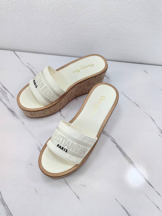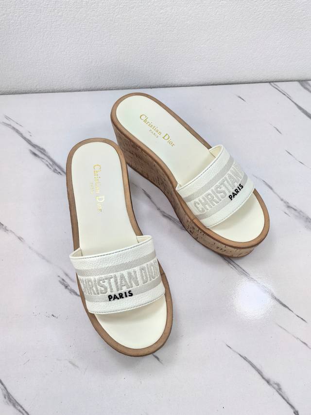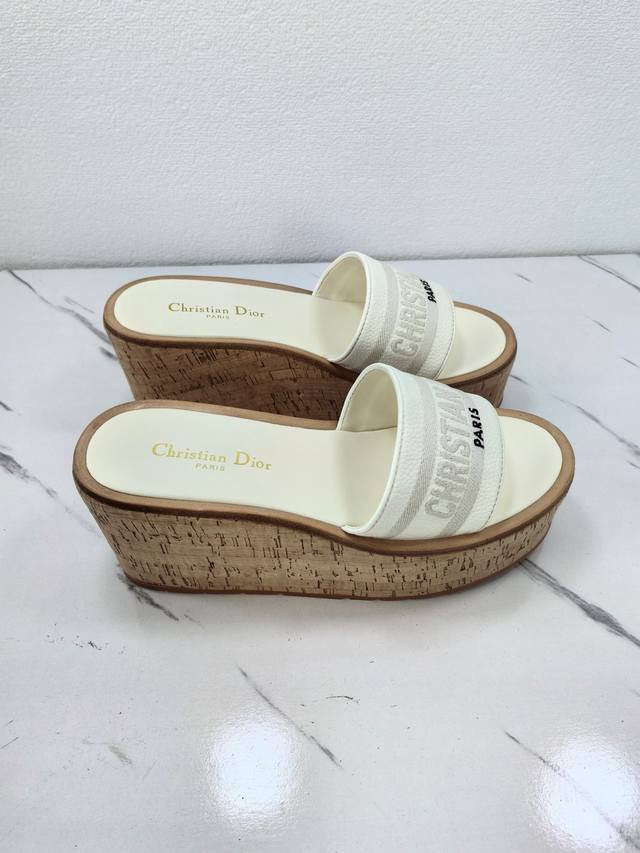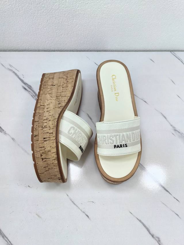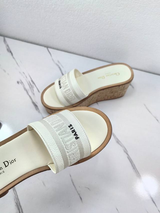 Dior 2025 Spring/Summer New Dway Jelly Color Wedge Heel Women's Shoes with Cd Logo 3D Embroidery, Thick Sole, Round Toe, Open Toe, Color Block Sandals. Material: Imported calfskin upper + water-dyed sheepskin insole + original cork combination TPU outsole. Sole thickness: 10cm. Sizes: 35-41. 40.41. Custom orders are non-refundable and non-exchangeable.