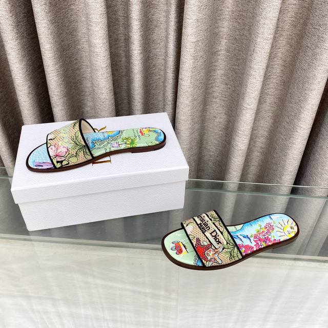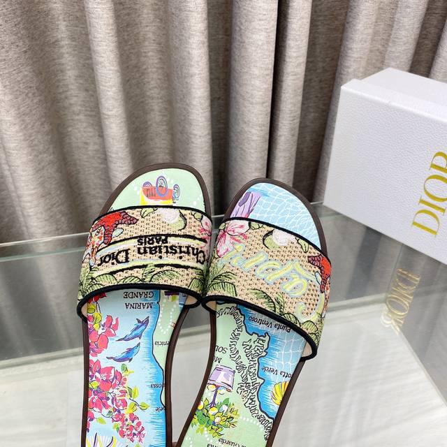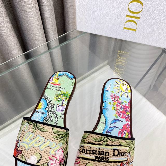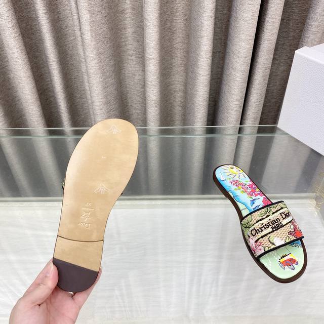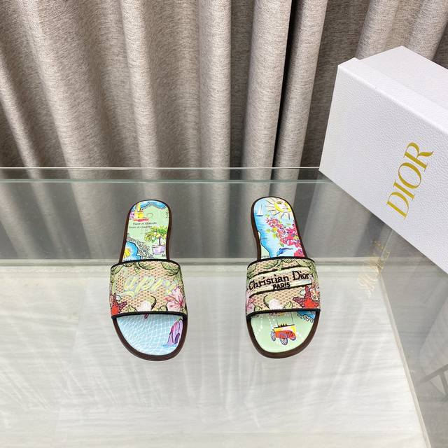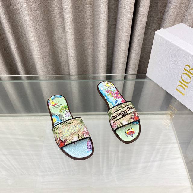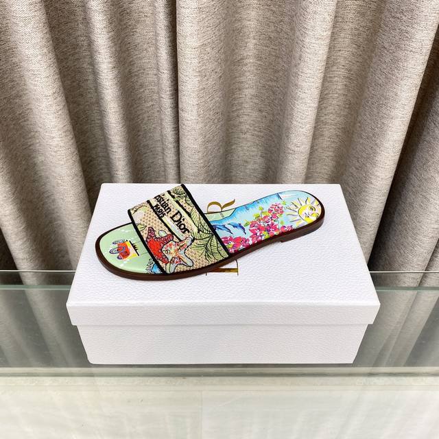 Dior 2025 Spring/Summer New Style Dway Flat Flip Flops in Jelly Color for Women with 3D Embroidered Cd Logo Round Toe Open Toe Colorblock Sandals