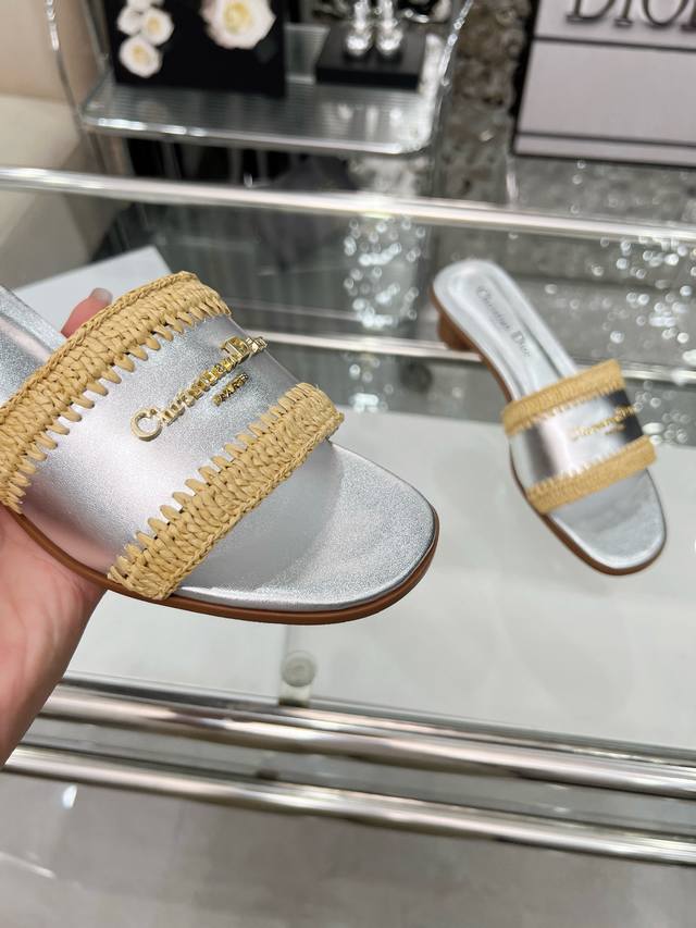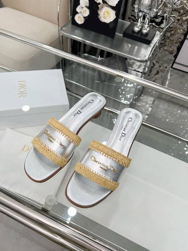 Dior 2025 Summer New Arrivals, embark on a stylish vacation journey, city exclusive, hand-woven raffia, sizes 35-43. Size 35 is custom-made and non-refundable. Rubber sole. Genuine leather sole. DDD