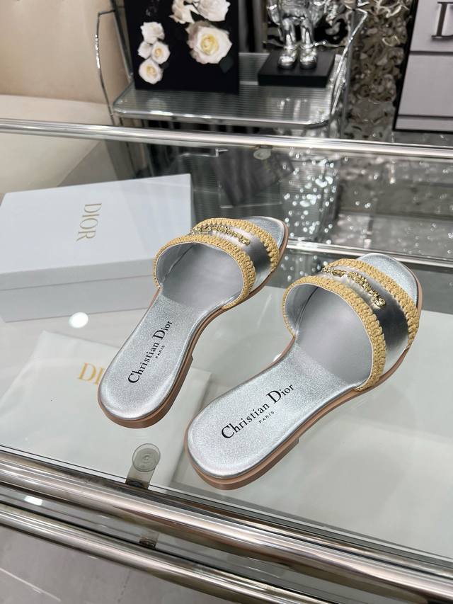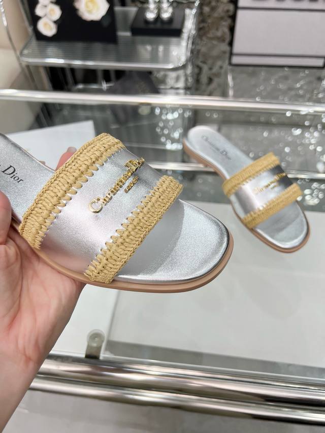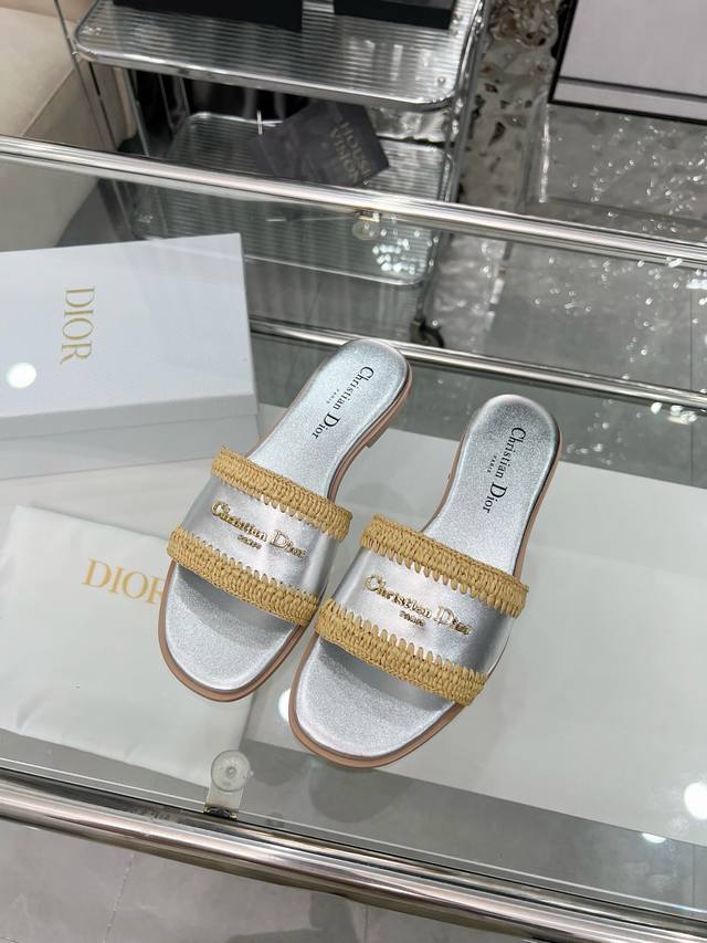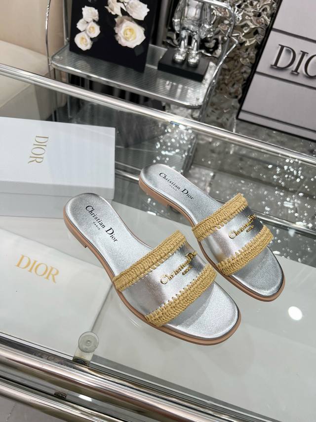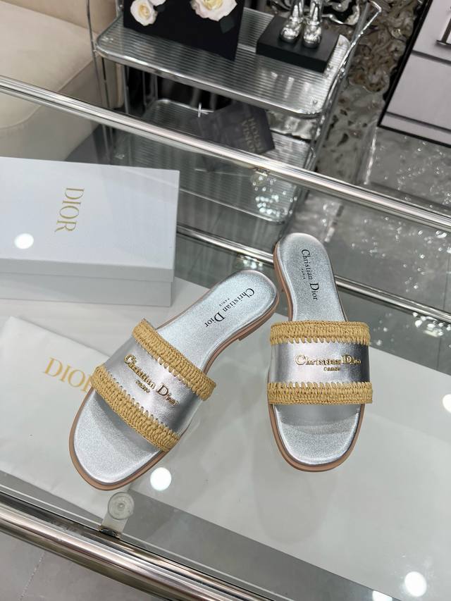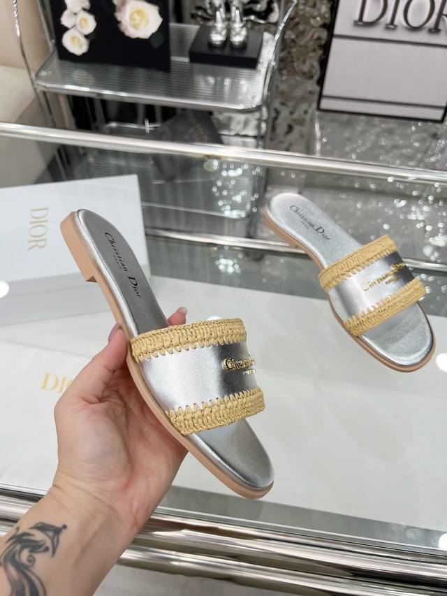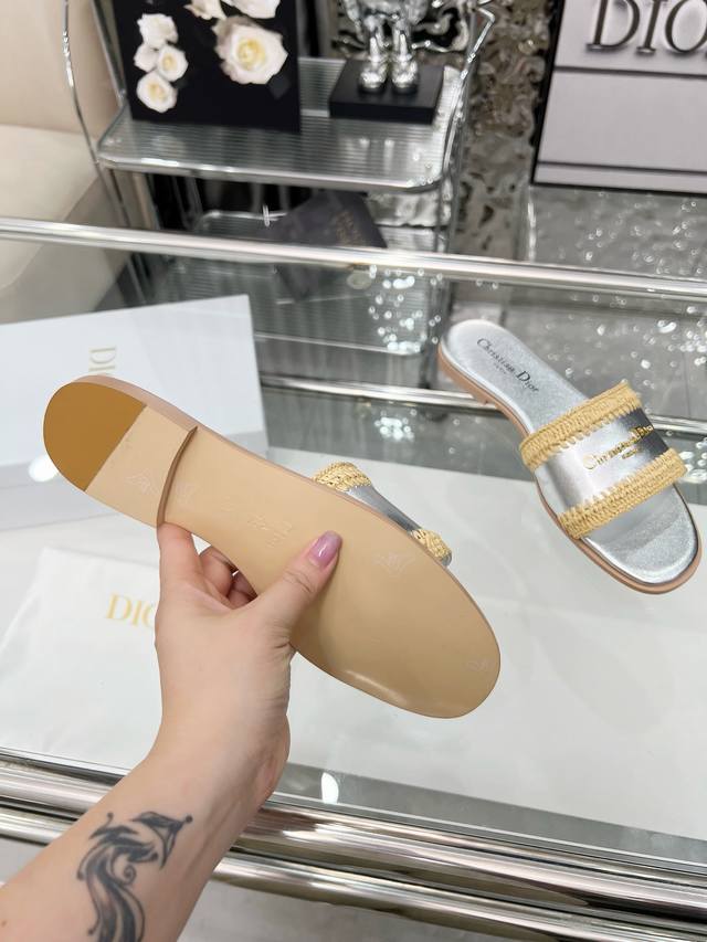 Dior 2025 Summer New Arrivals, embark on a stylish vacation journey, city exclusive, hand-woven raffia, sizes 35-43. Size 35 is custom-made and non-refundable. Rubber sole. Genuine leather sole.