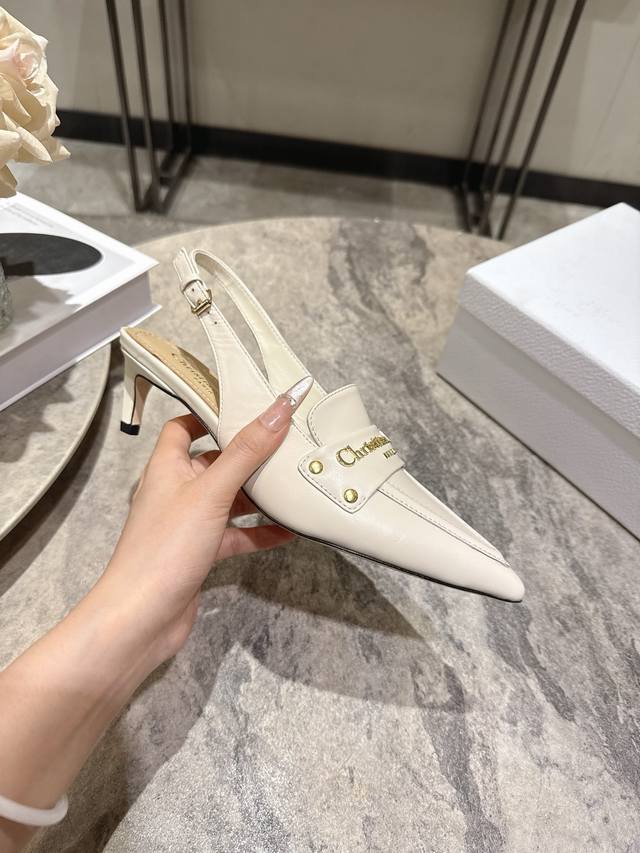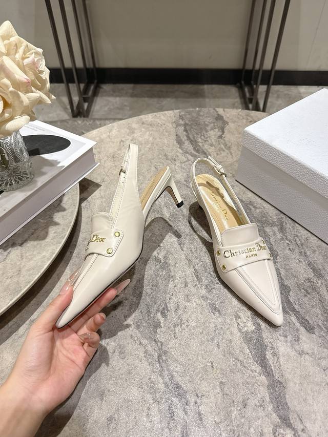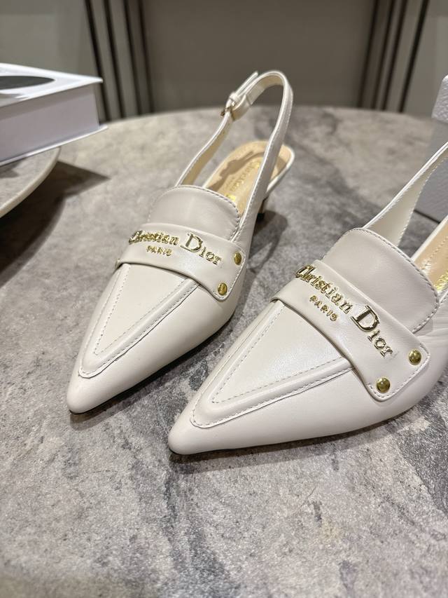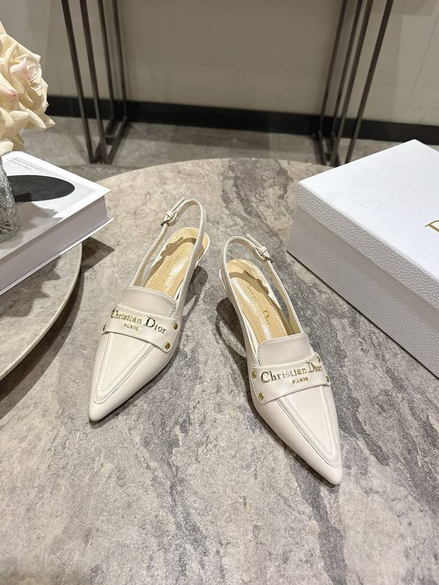 Dior 2026 Spring/Summer New Boy-D Perforated Brogue Style Pointed Toe High-Heeled Women's Sandals, Celebrity Style, Cd Logo Hardware Buckle, Low Heel Hollowed-Out Mule Slippers, Top-Tier High-End Version. Material: Original Custom-Made Open-Edge Beaded Cowhide Upper + Mixed Sheepskin Lining + Italian Genuine Leather Outsole. Heel Height: 4cm, 8cm. Size: 35-39, 40, 41, 42. Custom-made, no returns or exchanges.