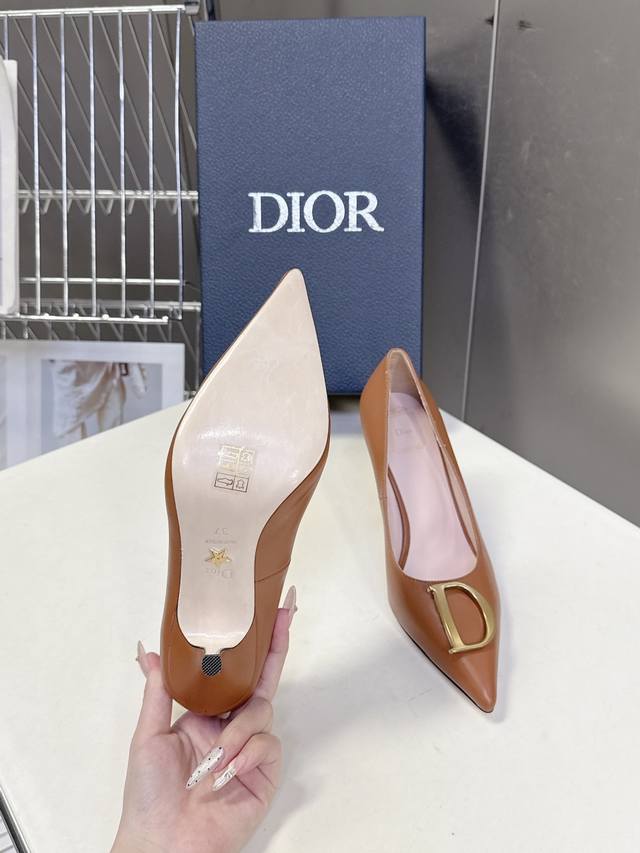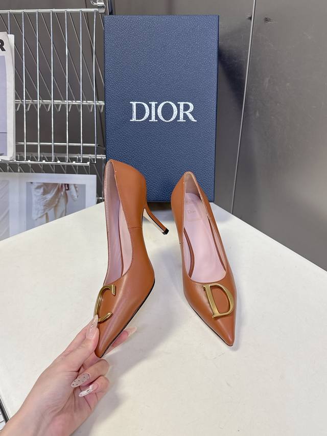 Dior 2026 Spring/Summer Newest High-Heeled Fashion Shoes Ddd Many celebrities and fashion bloggers have recommended these shoes; every girl's shoe closet must have a pair. These Dior fashion shoes are simply stunning! The minimalist design, exquisite shape, and super comfortable fit make them irresistible. One look and you'll want to own them immediately, radiating a woman's confident charm. The upper is made of imported calfskin, the lining is a blend of sheepskin, and the hardware is original. The heel height is 8.5cm, and it's made of Italian genuine leather. Sizes: 35-40. Size 40 is custom-made and non-refundable. DDD