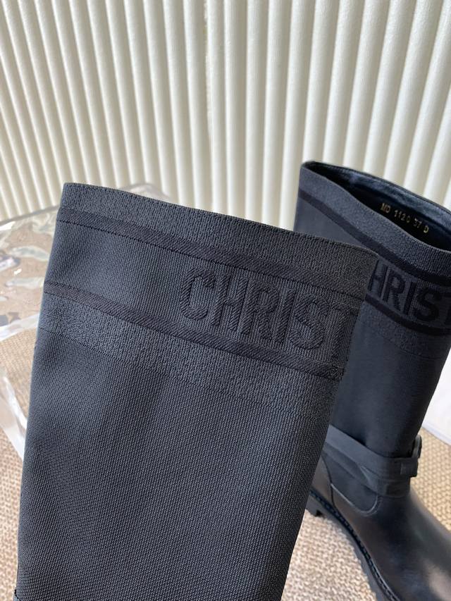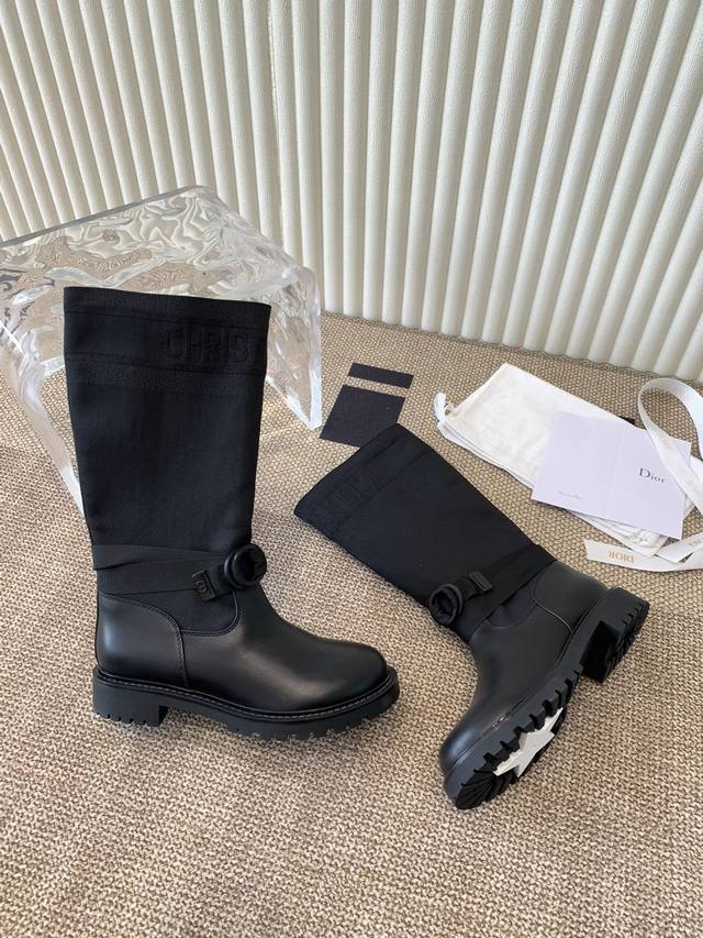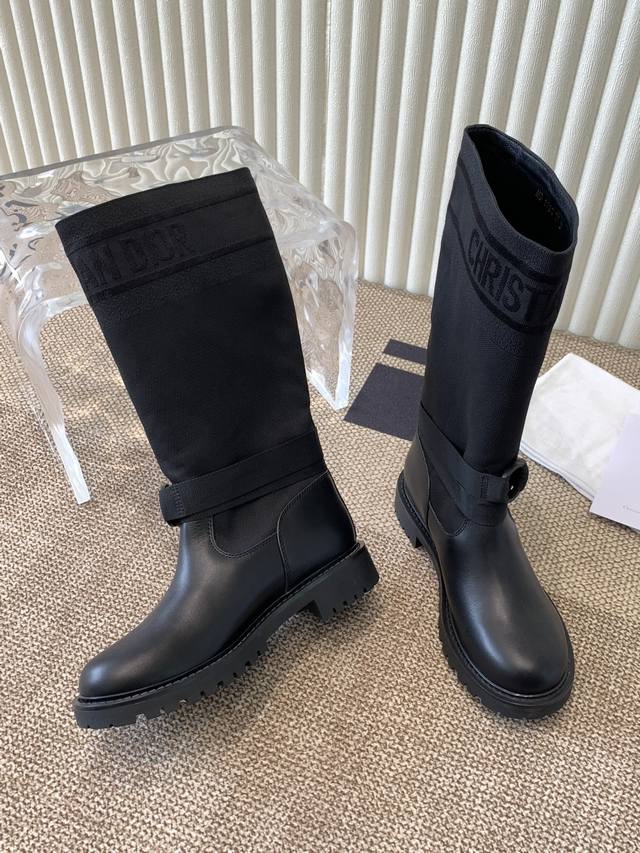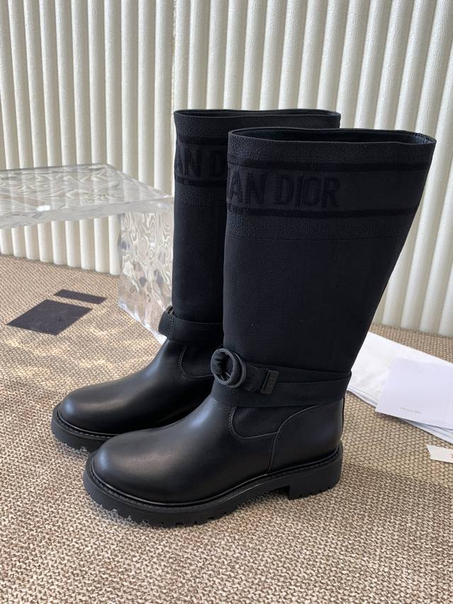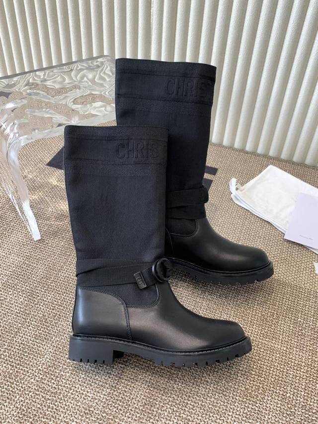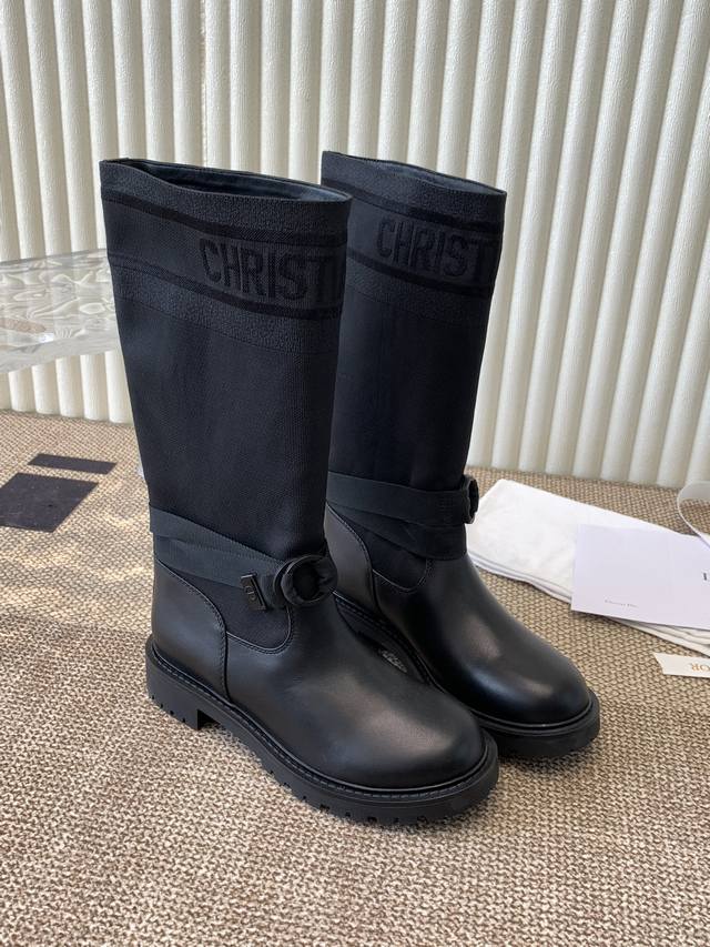 The latest autumn/winter colors, high-end poster style D-Mor electro-embroidered color-blocked letter logo round toe mid-calf graffiti women's boots, celebrity style, low-heeled slip-on knight military boots, original development, top-of-the-line