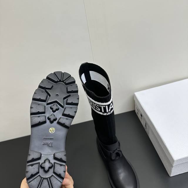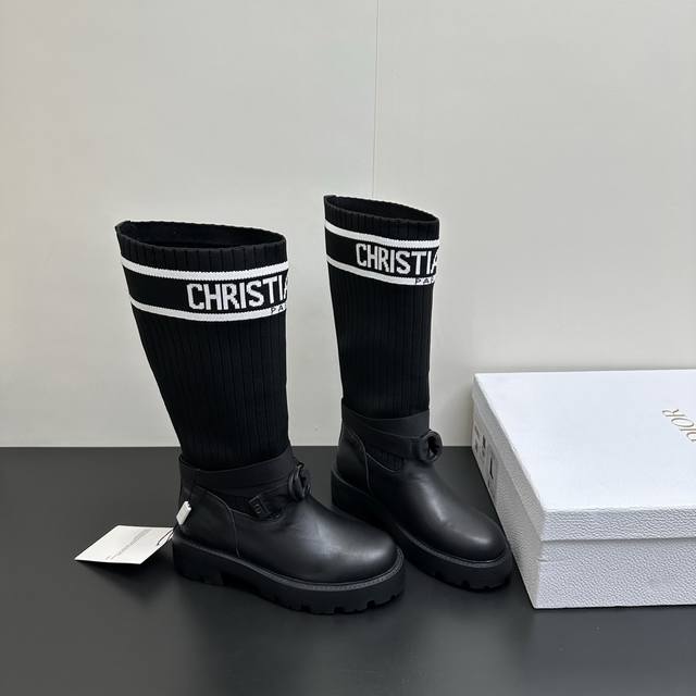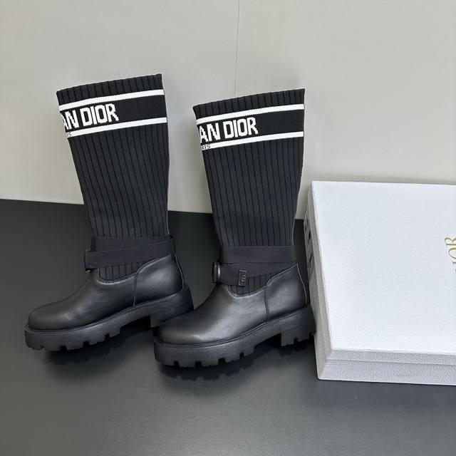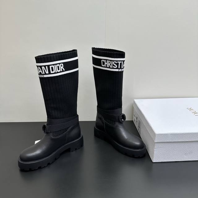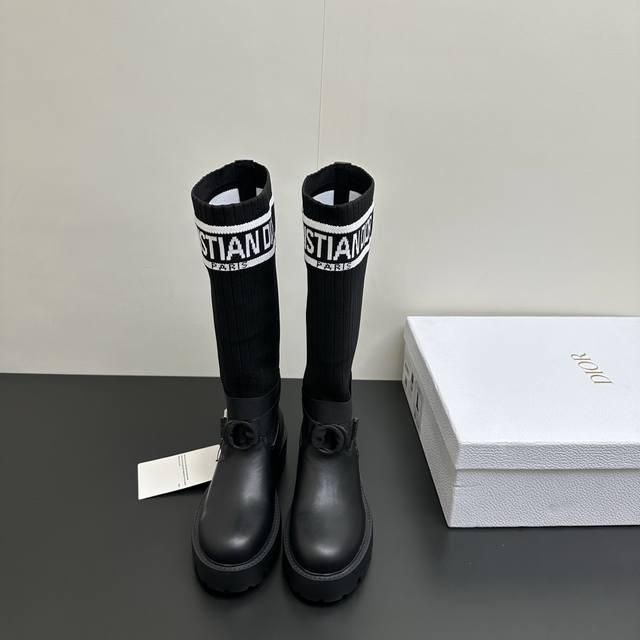 ). Features a logo nylon webbing and Cd-branded buckle. Comfortable and luxurious, suitable for all seasons. A perfect replica of the original material. Calfskin upper with a foldable flyknit shaft that hugs the calf. Full leather lining. Original super lightweight TPU non-slip outsole. Boot height 34cm (
