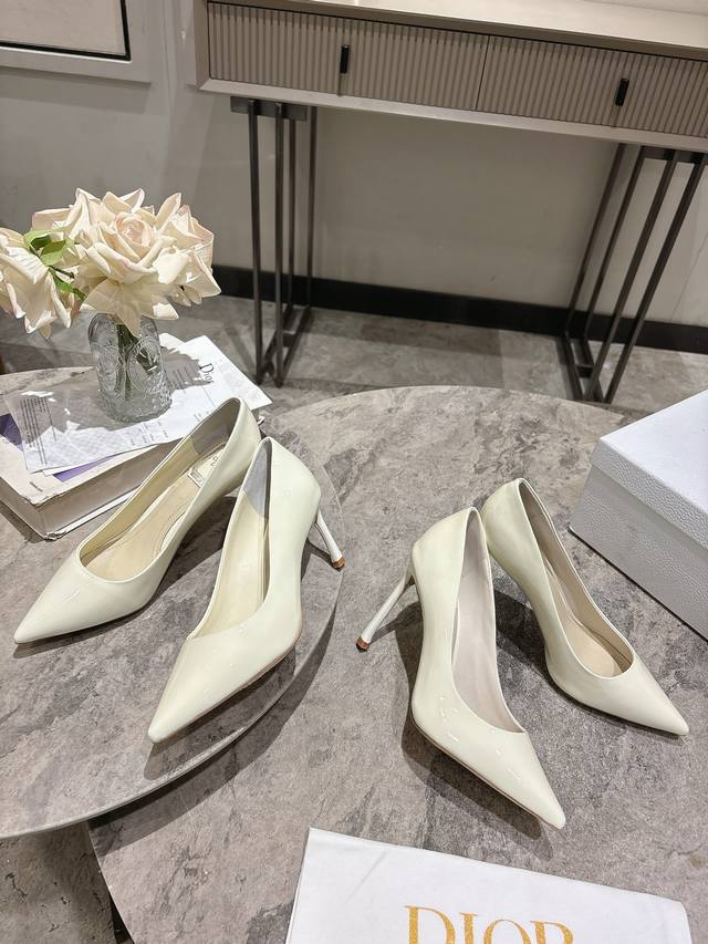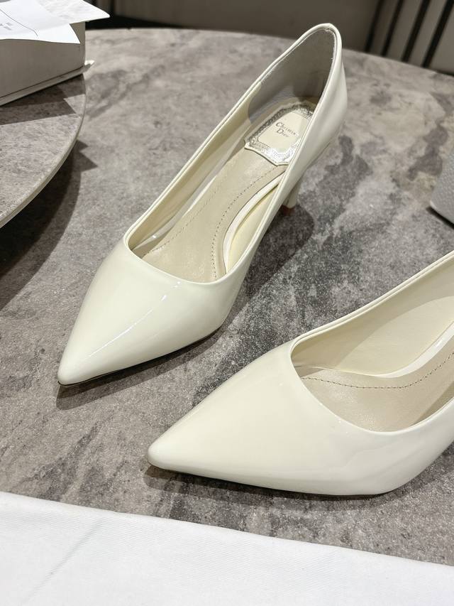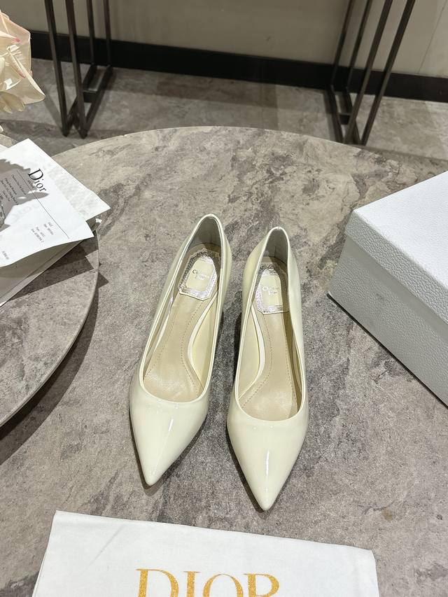 Dior 25Ss Spring/Autumn Collection Pointed-Toe Shoes, Top-Tier Market Version. Welcome to compare. Materials: Original patent leather upper + sheepskin lining + Italian genuine leather outsole. Sizes: Standard 35-39. Heel height 7cm/10.5cm. Sizes 34, 40, 41, 42. Made to order, no returns or exchanges.