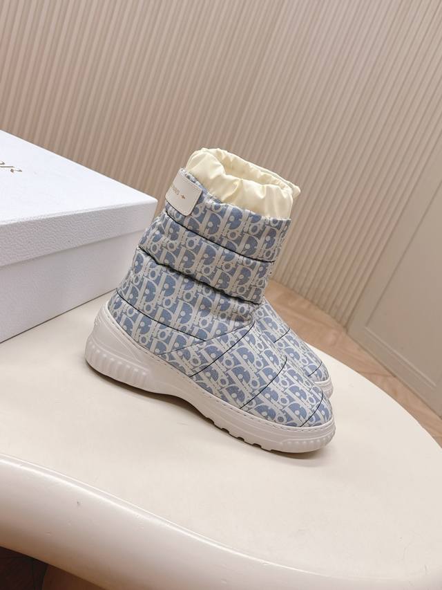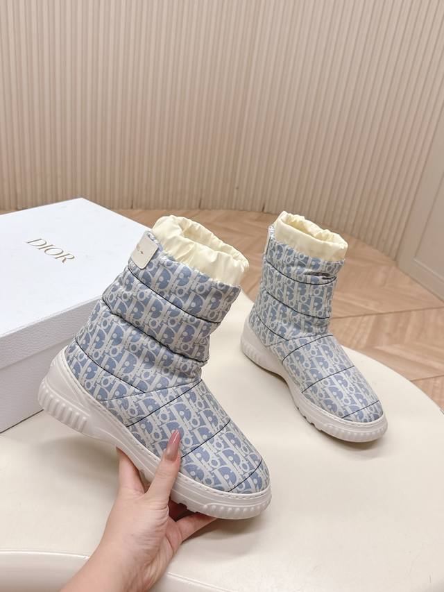 Dior Alps series autumn/winter new waterproof wool snow boots. The classic monogram design on the upper looks great with any autumn/winter outfit, without any bulkiness; the warm and comfortable boot shaft combines fashion and comfort, bringing warmth to the bleak winter. The laceless design makes them easy to put on and take off. A fashionable item for autumn and winter outings. Material: Original waterproof fabric; Lining: Wool insole; Outsole: Non-slip foam sole; Sizes: 35-40 (40 is custom-made and non-refundable).