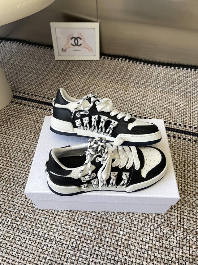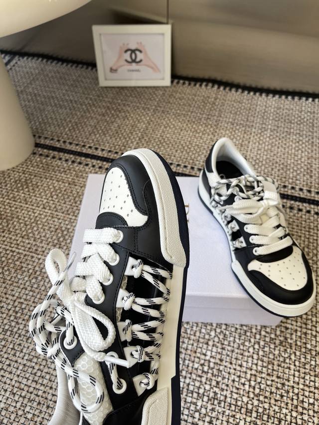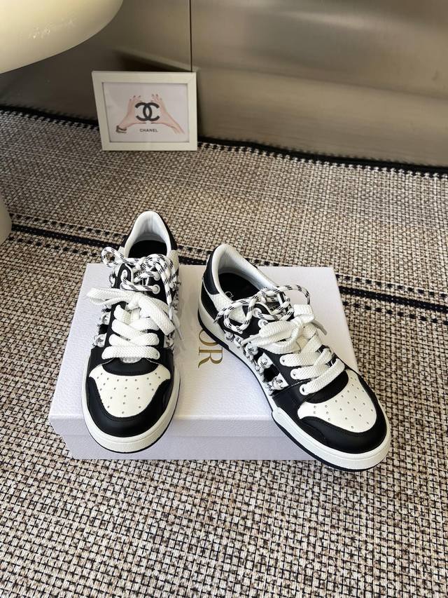 Dior C'Est 25Ss New Preppy Style Casual Sneakers. These shoes exude a striking and fashionable style. The meticulously crafted upper features a side cutout design, and super stylish details add a touch of elegance. The lightweight sole provides exceptional comfort, showcasing the charm of a sporty look and adding a fashionable touch to various casual outfits. The tongue and sole are adorned with the Christian Paris logo, and the design incorporates cowhide leather. Sizes: 35-40, 40 (custom sizes available).