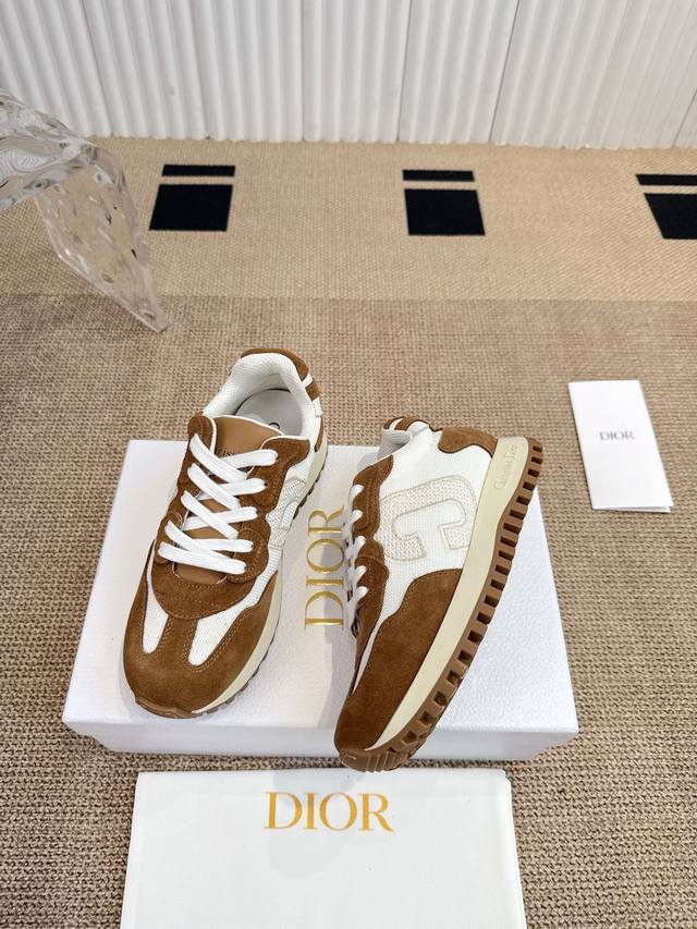 Dior C'est, the new casual sneaker for Spring/Summer 25, is crafted from cowhide and mesh for a lightweight and breathable feel. The Cd lettering on the side is instantly recognizable as Dior, and the sporty design incorporates tassel details for an added touch of elegance. Upper: Original fabric. Sole: Original outsole. Sizes: 35-46. Please specify "Men's or Women's" when ordering. 45.46 is customizable and cannot be returned or exchanged.