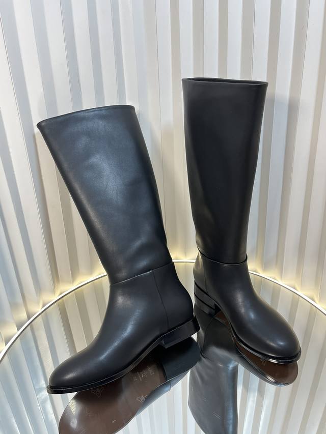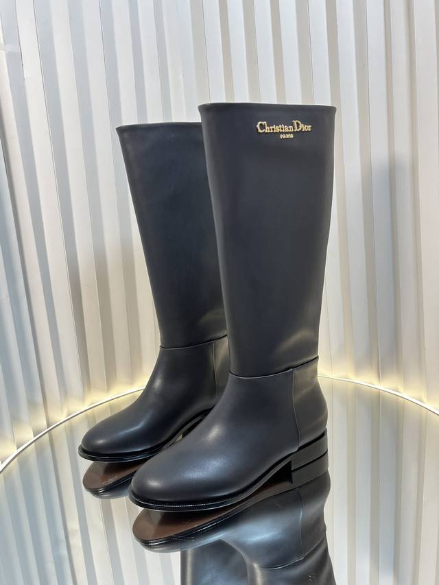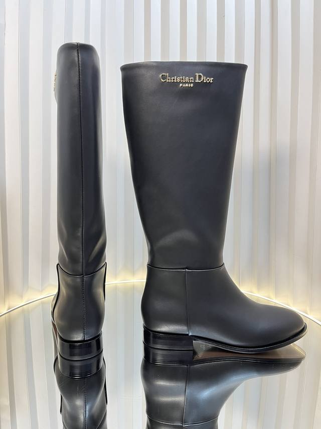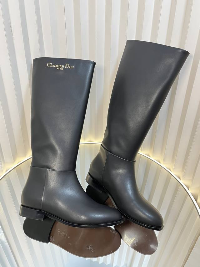 Dior Dior 25 autumn and winter new D-Town series punk style women's boots celebrity style Cd letter logo hardware buckle motorcycle knee-high boots low heel round toe one-step knight high boots