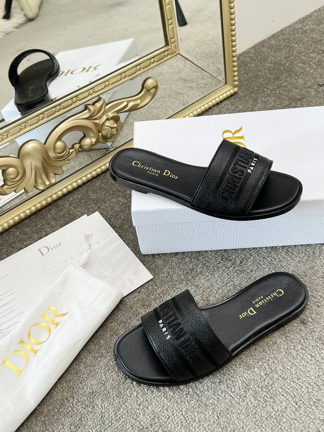 Dior Dway 3D Metallic Embroidered Slip-on! 2025 New Upgrade, Matching Retail Colors and Last. Vibrant and beautiful for summer, the latest style with a square toe for a fashionable look. 3D high-density metallic embroidery, exquisite logo. Super comfortable lambskin lining. Whether for a beach vacation or everyday wear, it exudes a fresh and clean feel! Sizes: 35-40, 40, 42. Custom orders are non-refundable. Factory price. Rubber sole + 40.