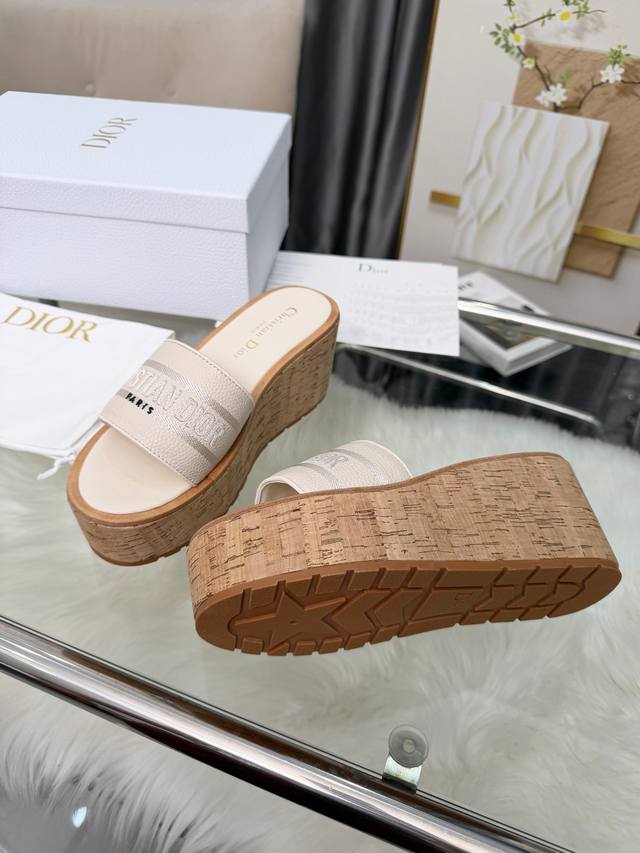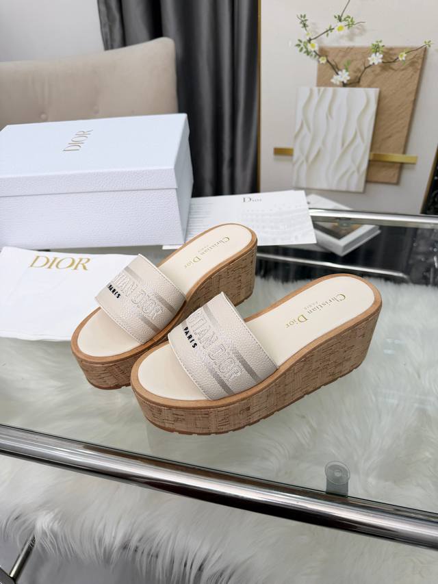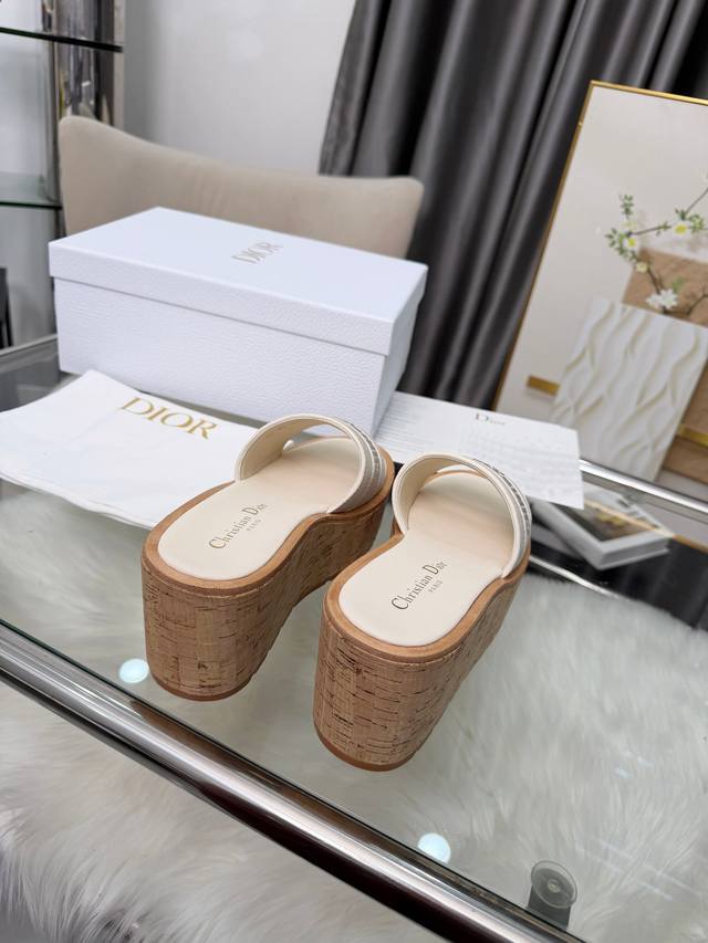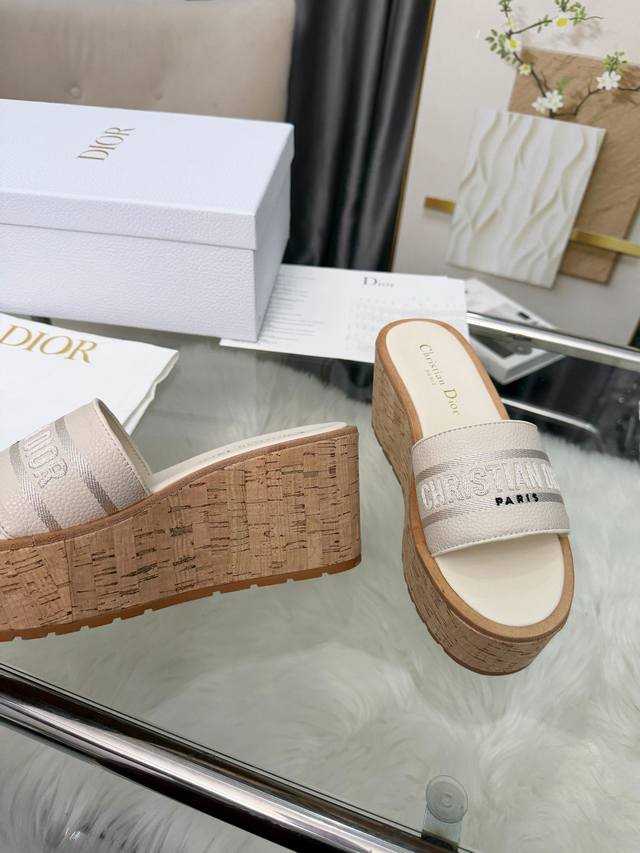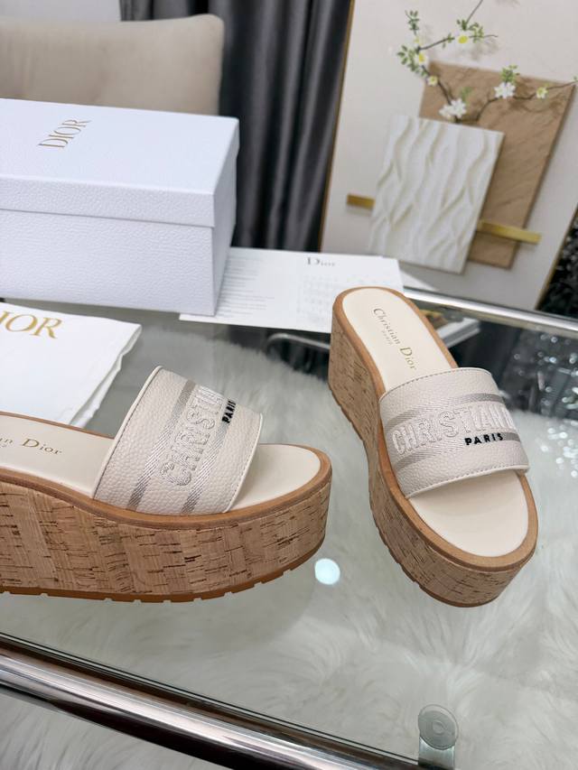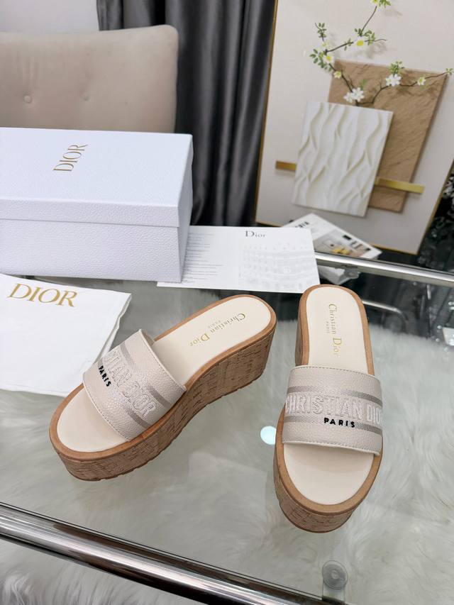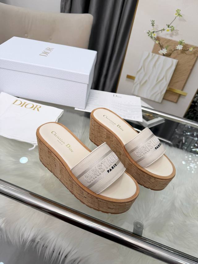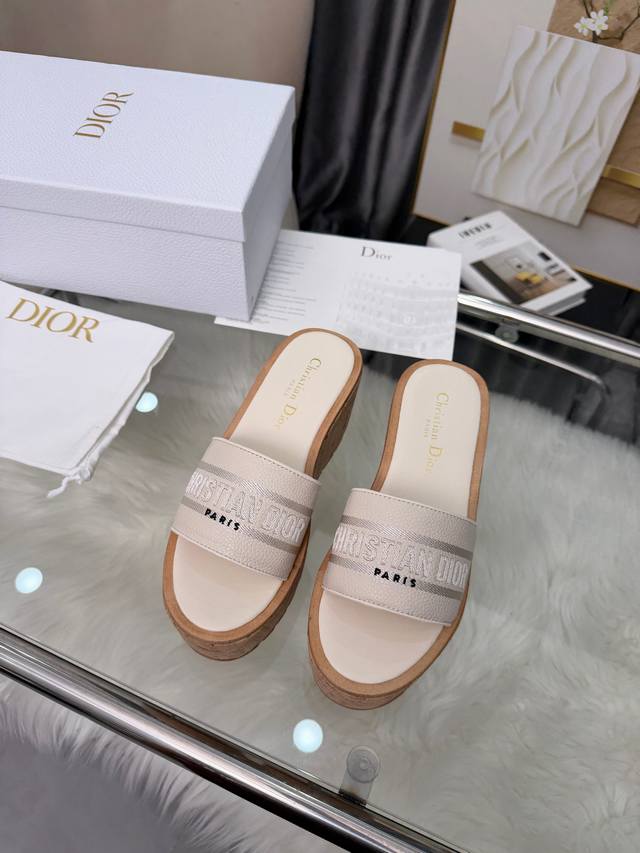 Dior Dway Platform Wedge Sandals. These platform sandals are stylish, casual, and highly recognizable. Inspired by the brand's lead designer, the design is cleverly incorporated into the perfect shoe shape. The addition of the brand's buckle enhances the fashionable look! Original craftsmanship ensures perfect and exquisite workmanship! Upper: Lychee-textured leather + embroidered pattern. Sizes: 35-39, 40-41 (custom orders welcome).