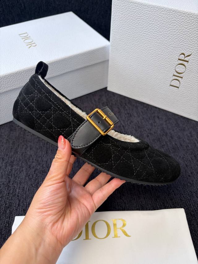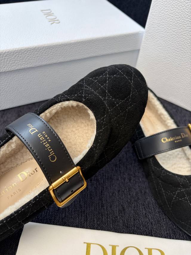 Dior Fall/Winter Newest Mary Jane Ballet Flats DDD Many celebrities and influencers are recommending these ballet flats. Featuring classic Dior cannage elements, ribbed straps with DIDM details, and exquisite hardware buckles. A must-have for any woman. Extremely comfortable upper in high-gloss cowhide leather. Original custom-made faux fur lining. Anti-slip outsole DDD Sizes: 35-40 Size 40: Custom orders, no returns or exchanges DDD