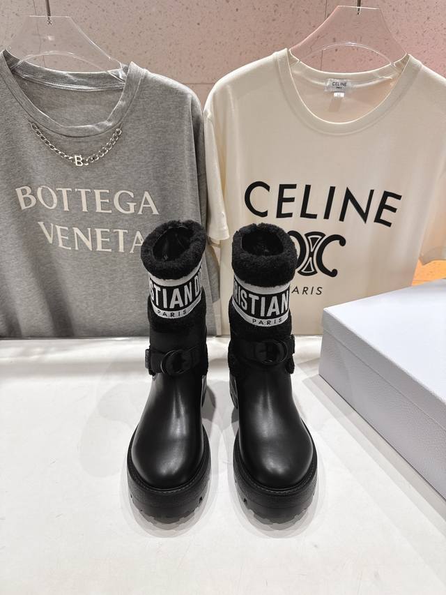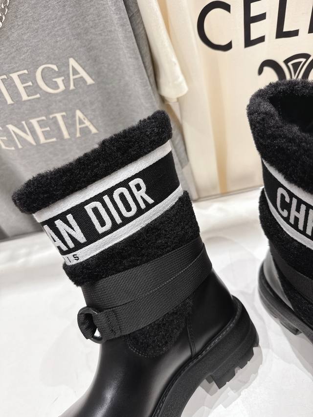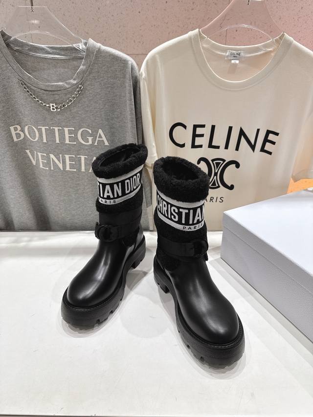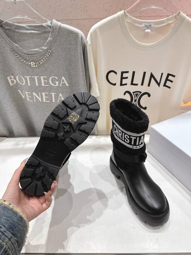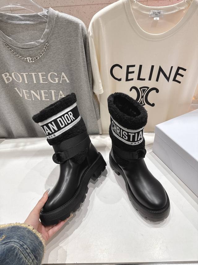 Dior Fall/Winter Newest Rider Fur Boots DDD Super popular with celebrities and influencers, combining fashion and trendiness, with a simple design and details full of brand elements. Super comfortable to wear, these boots are both cool and stylish, not only are they visually stunning and brand-recognizable, but the 3D embroidery is also incredibly chic~ DDD Imported top-grain cowhide upper + imitation sheepskin warm lining DDD Original rubber non-slip and wear-resistant outsole DDD Sizes: 35-41 [40.41 customizable] DDD