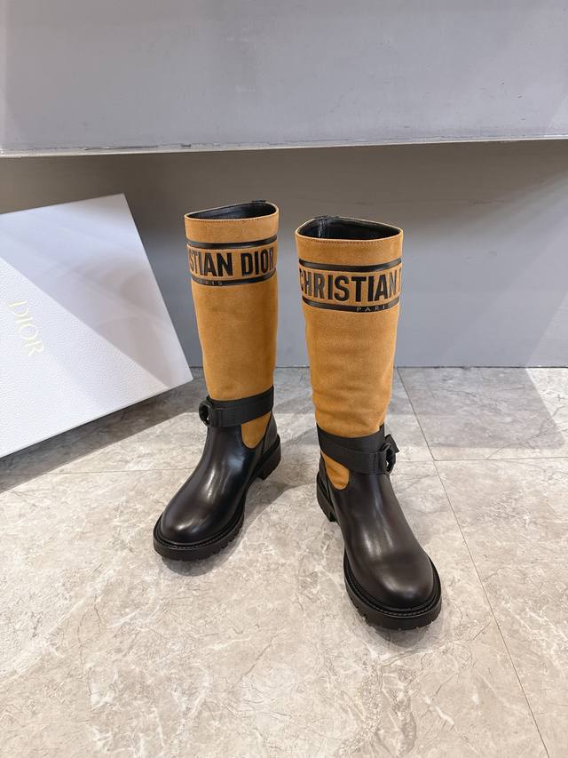 Dior Fall/Winter runway workwear mid-calf boots, highly recommended by celebrities and influencers. The upper is made of original cowhide, with a custom-designed boot shaft, a mixed sheepskin lining , and original Italian hardware. Crafted with unparalleled precision through multiple processes, these original molded boots feature a TPU outsole and a 3.5cm heel. Sizes 35-39, 40, 41 available by custom order. Leather lining available. Fur lining available.