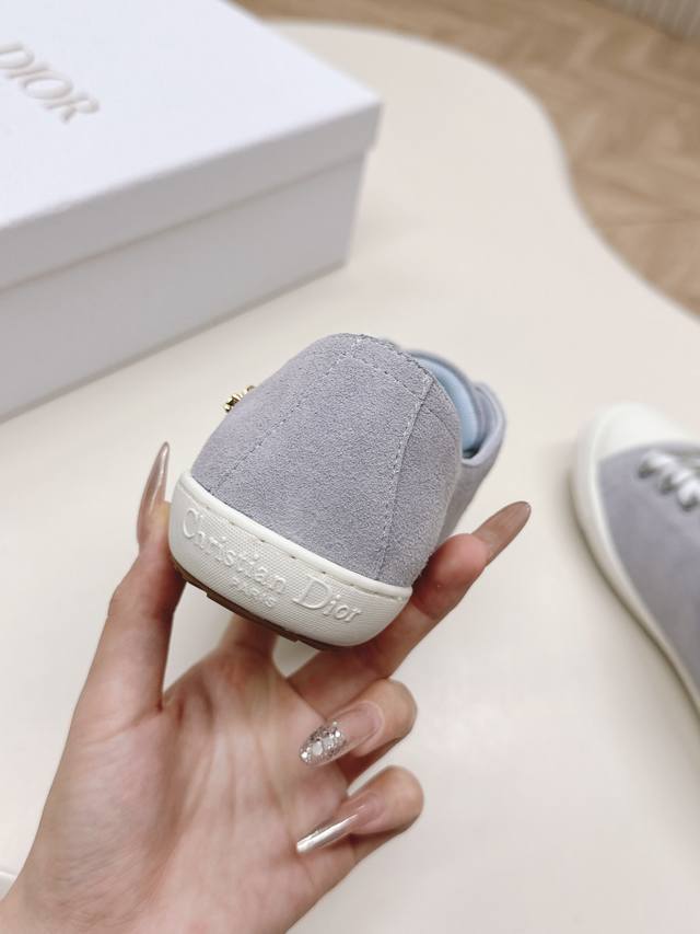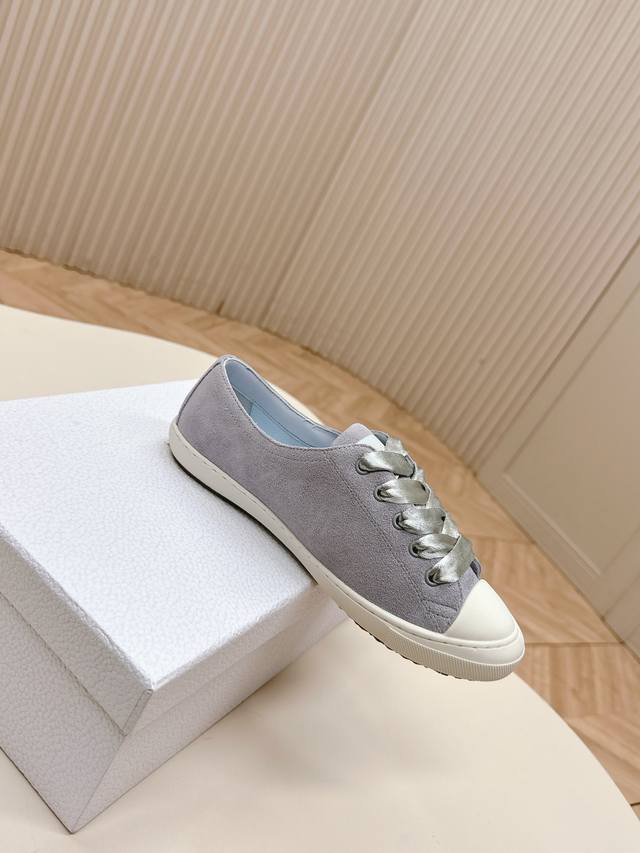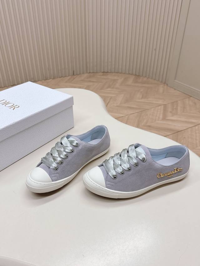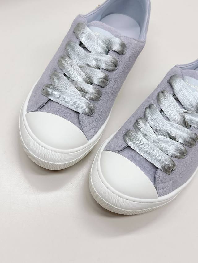 Dior Lucky Satin Casual Sneakers. Dior designers really understand girls' needs in summer! This new Lucky thin-soled shoe is as cute as its name suggests. The thin sole and low-cut design make the whole shoe very light and comfortable. The satin material is paired with wide satin laces in the same color. It looks stunning in the sunlight~ The soft upper feels like walking on clouds. It goes perfectly with socks, skirts, or pants. It's breezy and lazy when you walk in it. Every snapshot has that "effortless" elegance. Small and luxurious. Available in Baby White, Cherry Blossom Pink, Misty Blue, and Mysterious Black. The colors are fresh and versatile. All original materials. Sizes 35-40.