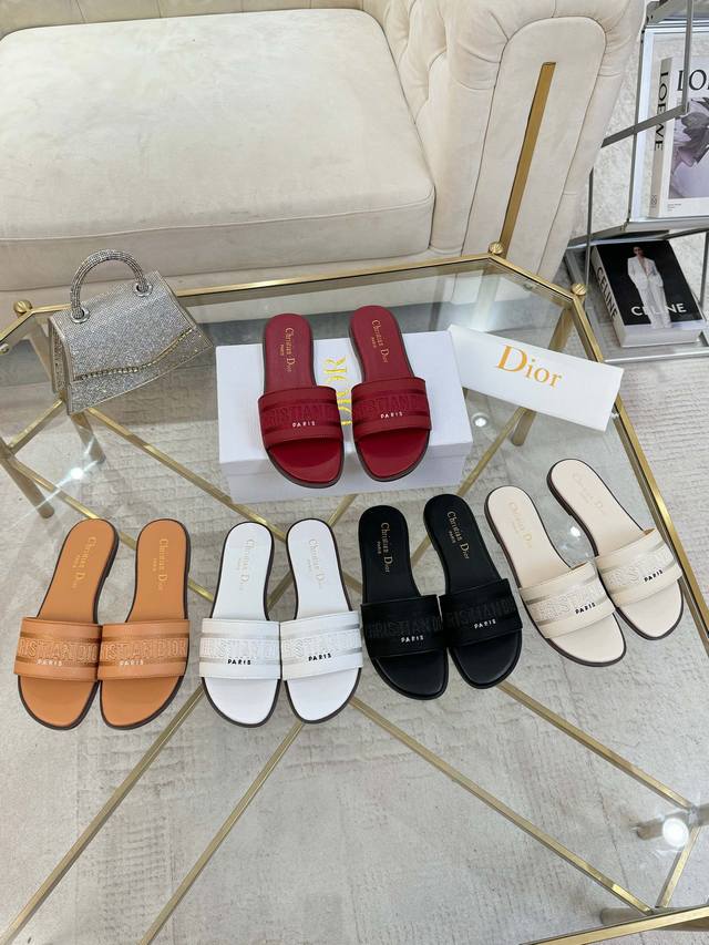 Dior New Style: Cowhide Leather Exterior, Lambskin Lining + Embroidery, 5 Colors Available, Sizes 35-42, Rubber Sole, Genuine Leather Sole DDD