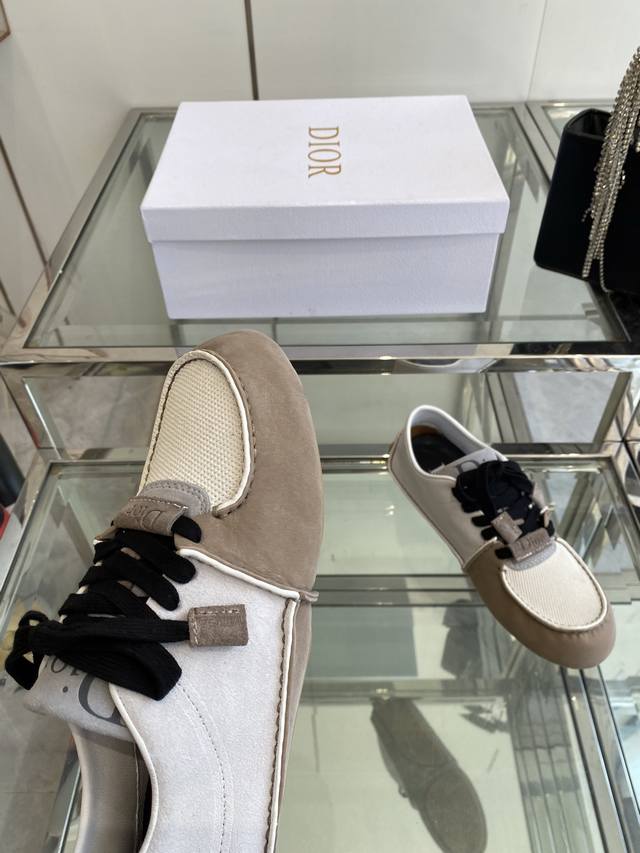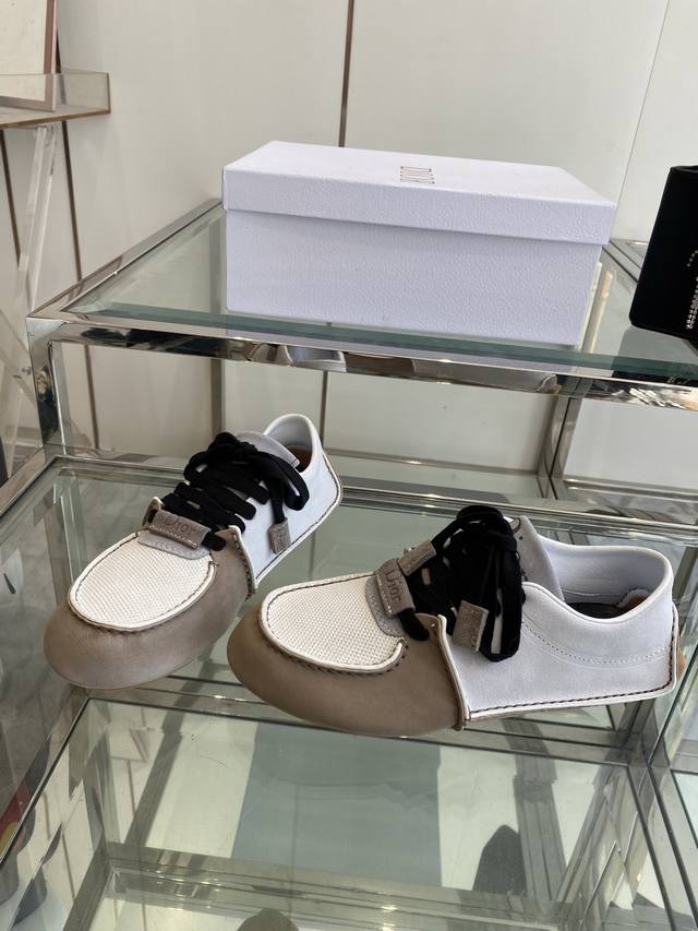 Dior Roadie Runway Couple Handcrafted Casual Sneakers. This Roadie shoe marks the beginning of a new chapter in Dior menswear's history, following Jonathan Anderson's first collection under his leadership. While retaining Dior's luxurious craftsmanship, the collection boldly incorporates the "structural visibility" concept from the early Nike Considered series, showcasing a tribute to sustainability and structural honesty through "leaving traces of handcraftsmanship in the design." Materials : Original imported top-grain cowhide leather ; Insole: Sheepskin; Outsole: Original custom-made non-slip rubber outsole; Sizes: 35-44 (Women's 40, Men's 45, custom-made).