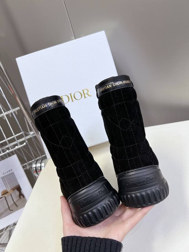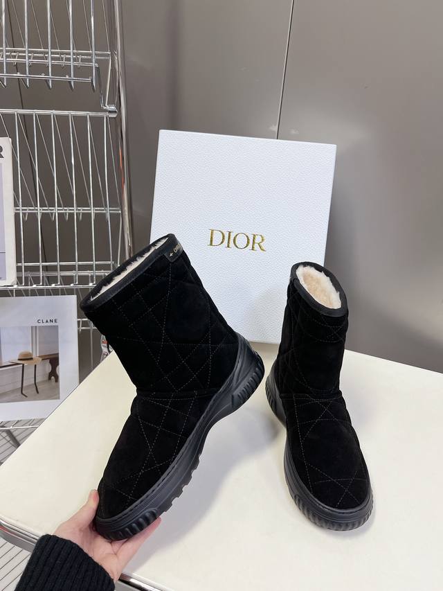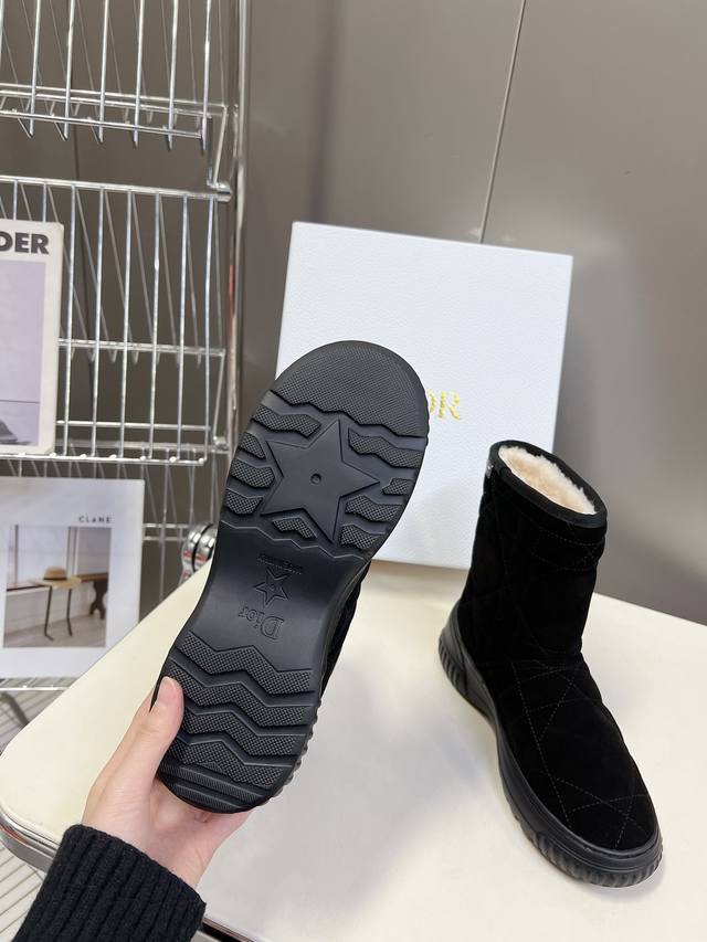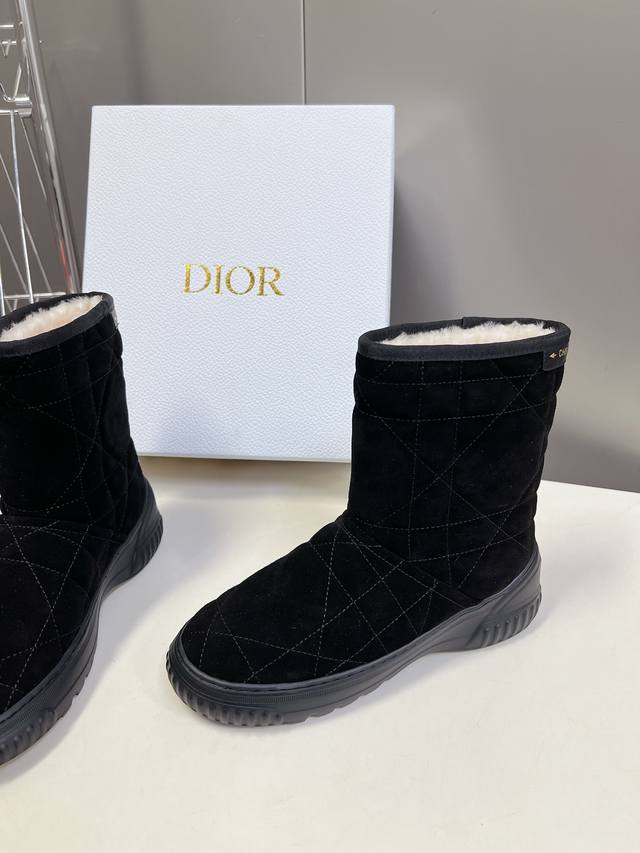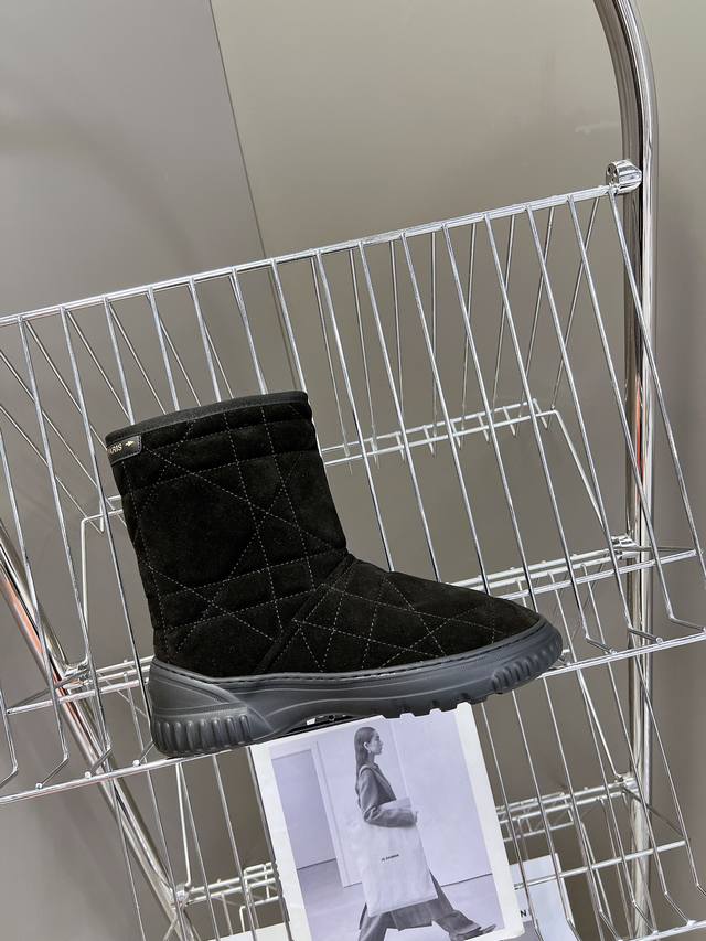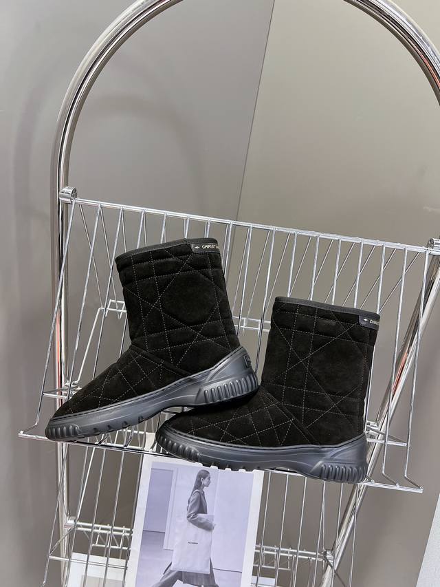 Dior Slip-on Slip-on Snow Boots (Autumn/Winter New Style) These Dior ankle boots cleverly blend elements of the Dior Chez Moi collection. Made from Oblique printed velvet, featuring the "Christian Dior" logo, shearling , rope detailing, and an Eva sole, these boots are suitable for both indoor and outdoor wear and can be paired with other Dior Chez Moi items. Material: Calfskin; Lining: Australian Wool. Sizes: 35-41 (40-41, custom orders accepted).