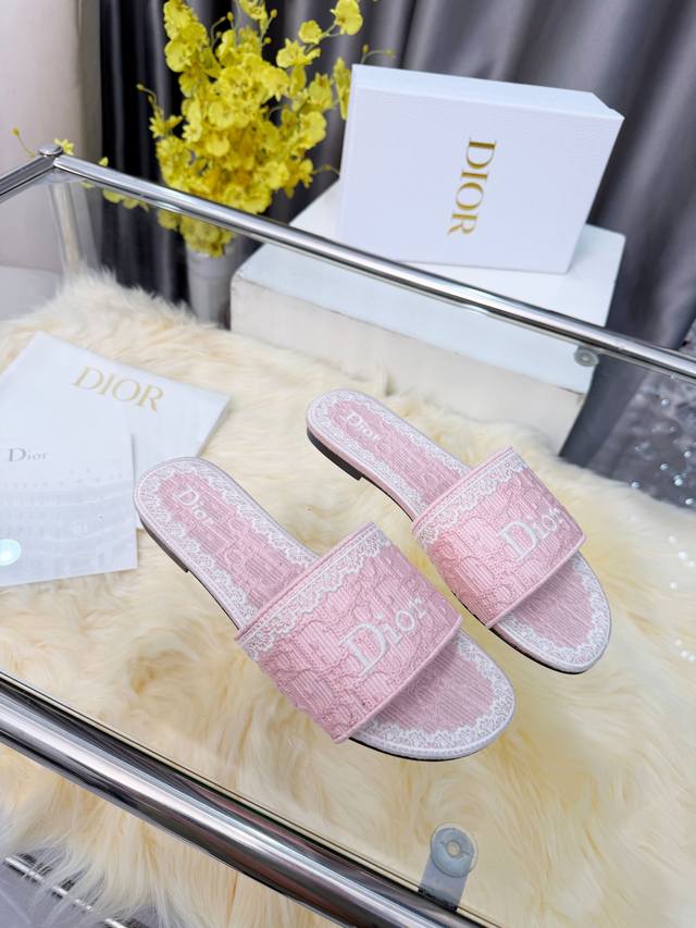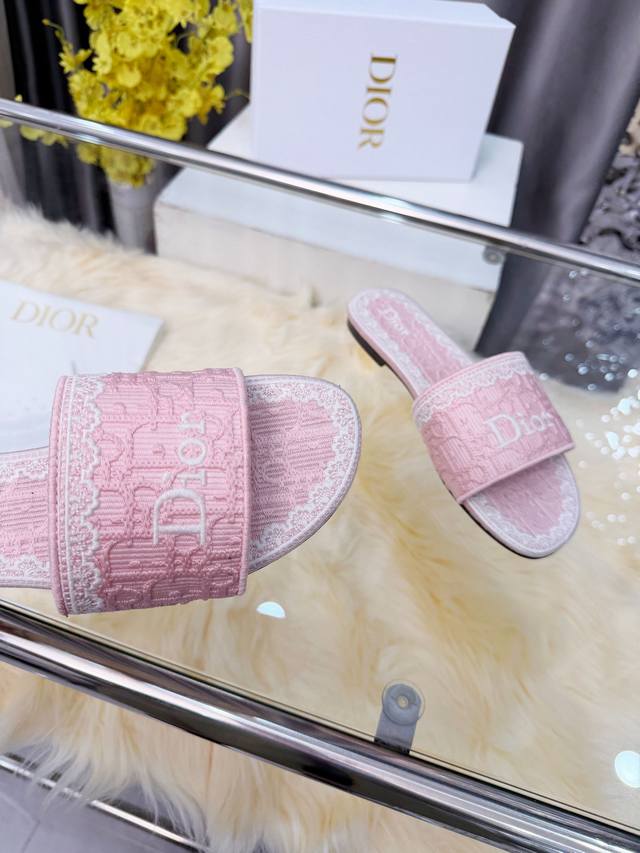 Dior Spring/Summer 2026 Slippers, exquisite and elegant. The 5D design on the upper and the highly recognizable Dior logo make them suitable for everyday wear or vacations. The Oblique embossing is a classic Dior element, paired with lace embroidery for a touch of French romance! The lightweight sole ensures comfort even after long periods of wear, making them practical and stylish