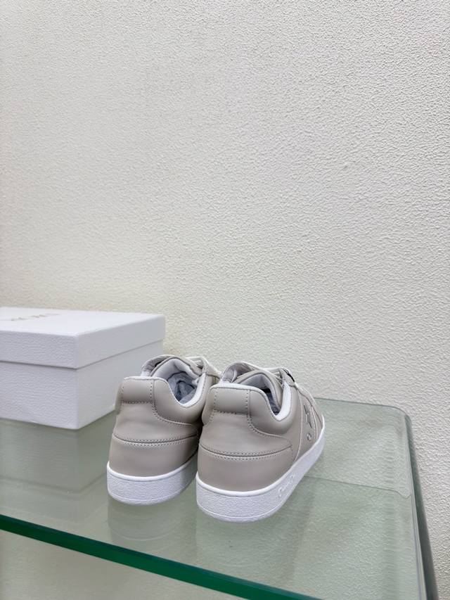 , true to the original. Gray with a white sole, made of top-grain cowhide. Textured calfskin.