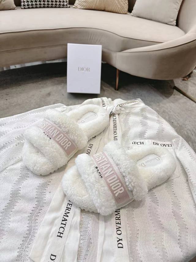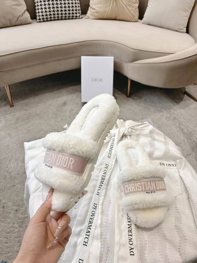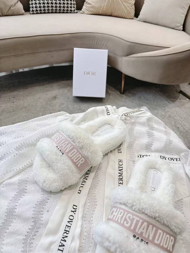 Dior Wool Slippers - New Upgraded Version. These Dior Fall/Winter Embroidered Wool Slippers feature a soft, supple 100% wool upper with embroidery. The insole is made of top-grain waxed cowhide, and the sole is custom-molded for a non-slip feel. Stylish, versatile, and comfortable, these slippers are sure to capture the hearts of countless girls and are a must-have for Fall/Winter. Sizes: 35-39, 40, 41, 42. Custom sizes are non-refundable and non-exchangeable.