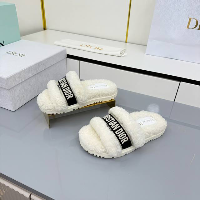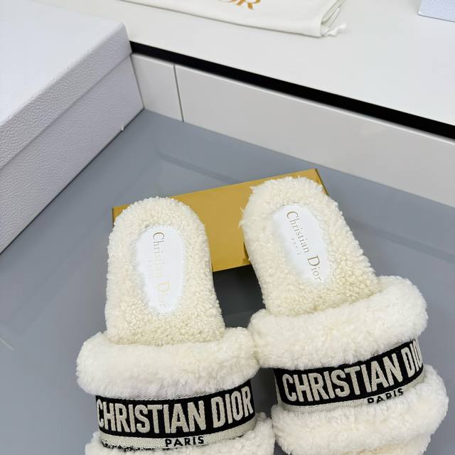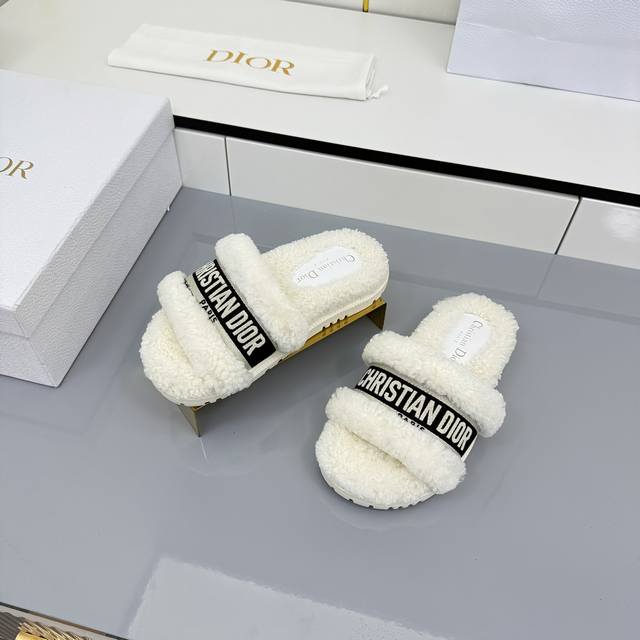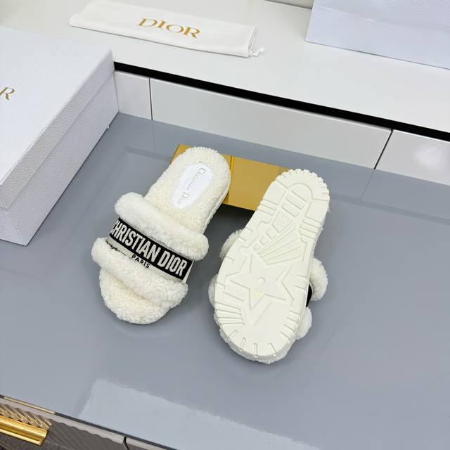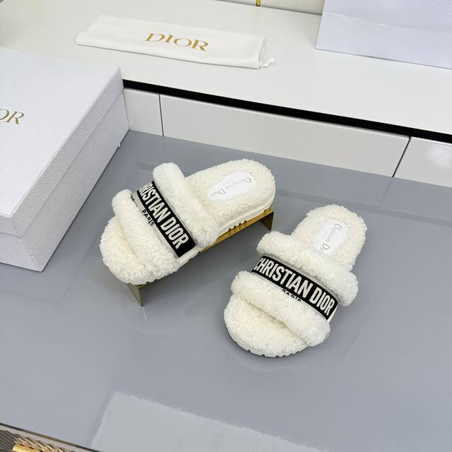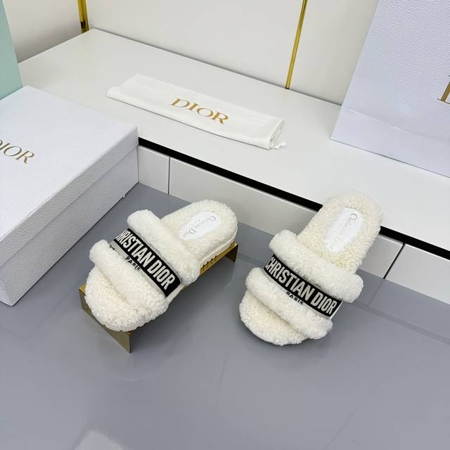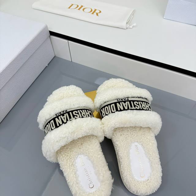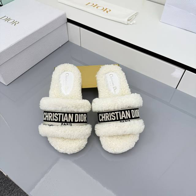 Dior Wool Slippers - New Upgraded Version. These Dior Fall/Winter Embroidered Wool Slippers feature a soft, supple 100% wool upper with embroidery. The insole is made of top-grain waxed cowhide, and the sole is custom-molded for a non-slip feel. Stylish, versatile, and comfortable, these slippers are sure to capture the hearts of countless girls and are a must-have for Fall/Winter. Sizes: 35-39 (sizes 40, 41, 42 are custom-made and cannot be returned or exchanged).