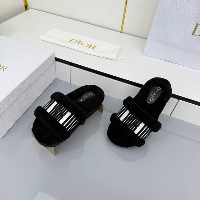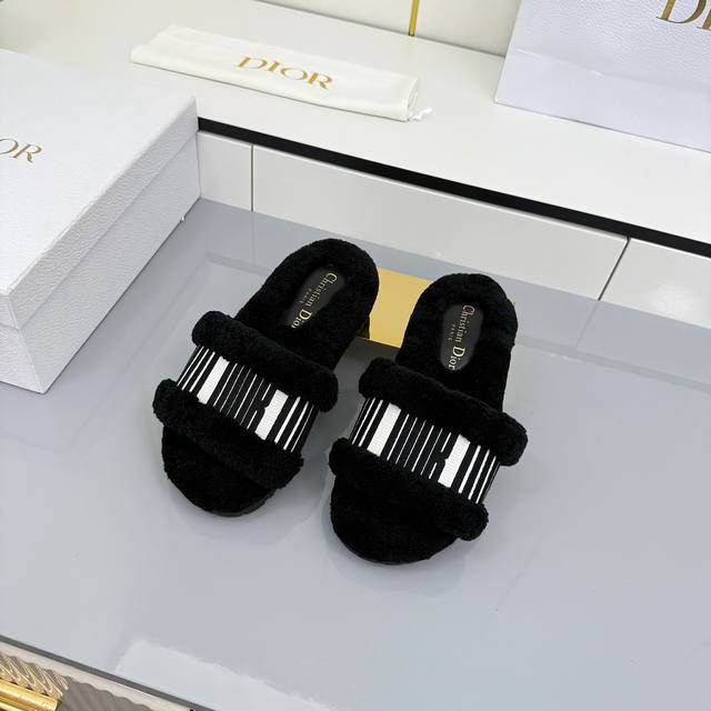 Dior Wool Slippers - New Upgraded Version. These Dior Fall/Winter Embroidered Wool Slippers feature a soft, supple 100% wool upper with embroidery. The insole is made of top-grain waxed cowhide, and the sole is custom-molded for a non-slip feel. Stylish, versatile, and comfortable, these slippers are sure to capture the hearts of countless girls and are a must-have for Fall/Winter. Sizes: 35-39, 40, 41, 42. Custom sizes are non-refundable and non-exchangeable.