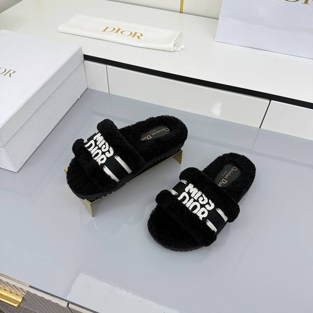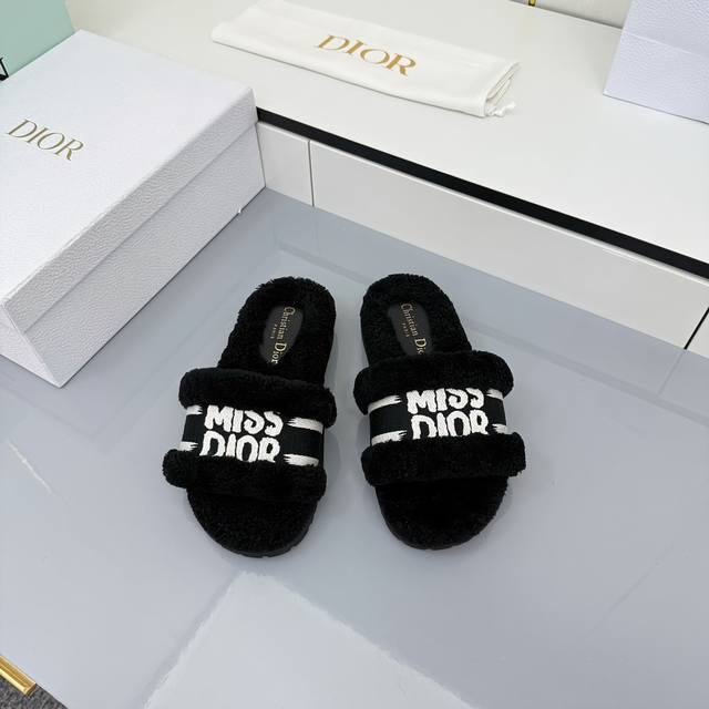 Dior Wool Slippers - New Upgraded Version. These Dior Fall/Winter Embroidered Wool Slippers feature a soft, supple 100% wool upper with embroidery. The insole is made of top-grain waxed cowhide, and the sole is custom-molded for a non-slip feel. Stylish, versatile, and comfortable, these slippers are sure to capture the hearts of countless girls and are a must-have for Fall/Winter. Sizes: 35-39, 40, 41, 42. Custom sizes are non-refundable and non-exchangeable.