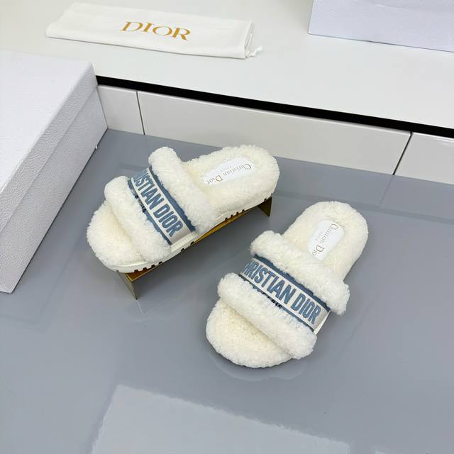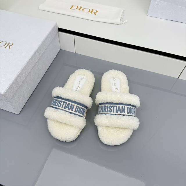 Dior Wool Slippers - New Upgraded Version. These Dior Fall/Winter Embroidered Wool Slippers feature a soft, supple 100% wool upper with embroidery. The insole is made of top-grain waxed cowhide, and the sole is custom-molded for a non-slip feel. Stylish, versatile, and comfortable, these slippers are sure to capture the hearts of countless girls and are a must-have for Fall/Winter. Sizes: 35-39, 40, 41, 42. Custom sizes are non-refundable and non-exchangeable.
