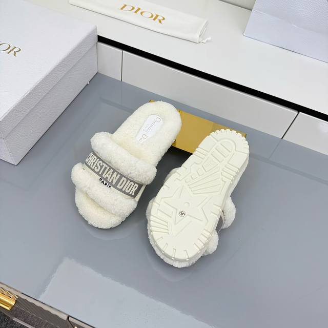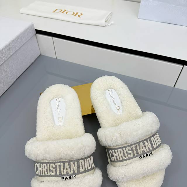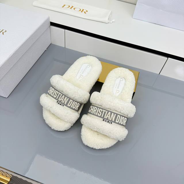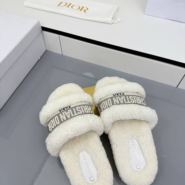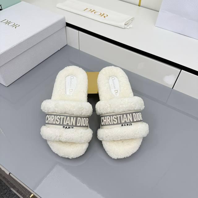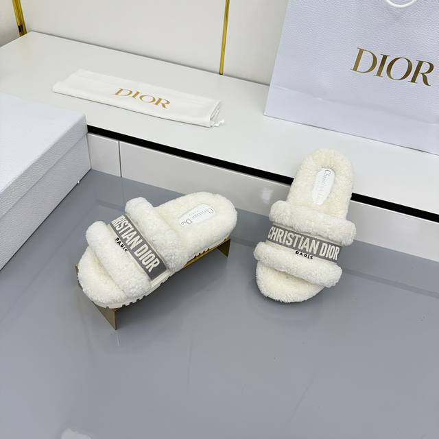 Dior Wool Slippers - New Upgraded Version. These Dior Fall/Winter Embroidered Wool Slippers feature a soft, supple 100% wool upper with embroidery. The insole is made of top-grain waxed cowhide, and the sole is custom-molded for a non-slip feel. Stylish, versatile, and comfortable, these slippers are sure to capture the hearts of countless girls and are a must-have for Fall/Winter. Sizes: 35-39, 40, 41, 42. Custom sizes are non-refundable and non-exchangeable.