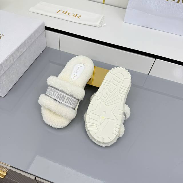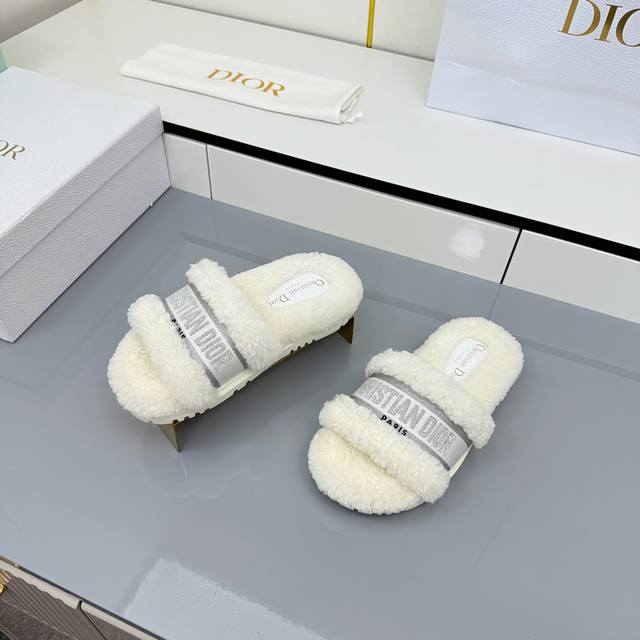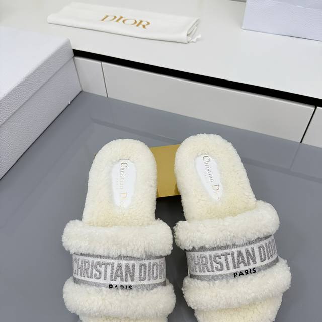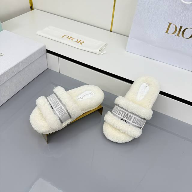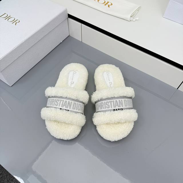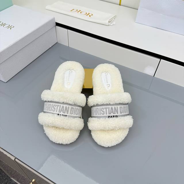 Dior Wool Slippers - New Upgraded Version. These Dior Fall/Winter Embroidered Wool Slippers feature a soft, supple 100% wool upper with embroidery. The insole is made of top-grain waxed cowhide, and the sole is custom-molded for a non-slip feel. Stylish, versatile, and comfortable, these slippers are sure to capture the hearts of countless girls and are a must-have for Fall/Winter. Sizes: 35-39, 40, 41, 42. Custom sizes are non-refundable and non-exchangeable.