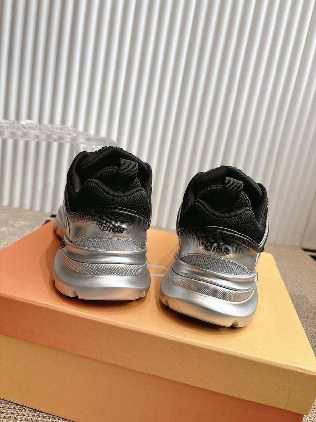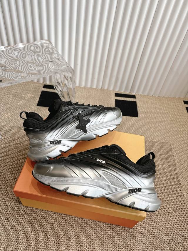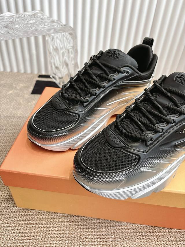 Dior X Lewis Hamilton B44 Blade Limited Edition Gradient Color Sneakers Thick-Sole Casual Shoes. These B44 Blade sneakers, from the Dior and Lewis Hamilton limited edition collection, feature a voluminous silhouette and striking, stylish design inspired by the 2000s. Crafted from gradient black and silver mesh with tonal technical fabric panels, they feature a contrasting Blade panel on the sole, a nod to running. Dior and Lewis Hamilton logo charms dangle from the eyelets, and Dior signatures are embellished on the upper, heel, and sides. Tricolor laces further enhance the look, while internal padded support at the rear enhances the sporty aesthetic, adding a modern touch to any casual look. Fabric: Authentic imported top-grain cowhide leather. Lining: Authentic imported breathable mesh. Sole: Authentic, molded, non-slip rubber. Sole Thickness: 5.5cm. Size: 35-45.