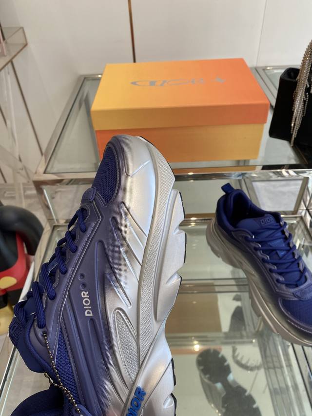 Dior X Lewis Hamilton B44 Blade Limited Edition Gradient Colorway Sneakers, Platform Casual Shoes. This B44 Blade sneaker from the Dior and Lewis Hamilton limited edition features a striking and stylish full silhouette. It's meticulously crafted with gradient black and silver mesh fabric, paired with matching technical materials. The sole is adorned with contrasting Blade panels, paying homage to running. Dior and Lewis Hamilton logo charms dangle from the eyelets. The upper, heel, and sides are embellished with the Dior logo, and the three-color laces add a touch of sophistication. The padded heel provides added support, showcasing a sporty aesthetic and adding a modern touch to various casual looks. Materials: Original imported top-grain cowhide leather; Original imported breathable mesh lining; Original molded non-slip rubber material; Sole thickness: 5.5cm. Sizes: 35-45 (Women's 40, Men's 45, custom-made).
