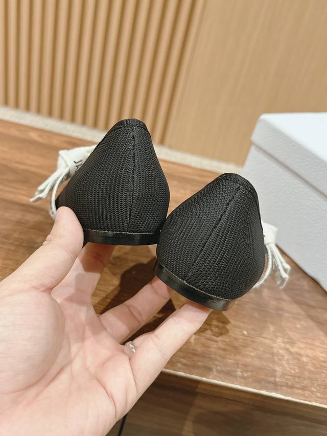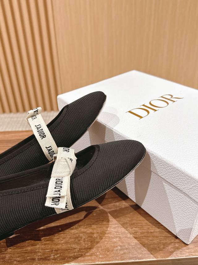 Dior's classic ballet flats are inspired by the world of dance. The simple round toe design is adorned with a J'Adior embroidered bow, exuding a youthful elegance and fairytale feel. Cotton sheepskin lining, comfortable elastic laces on the sides, and an Italian A-grade leather sole create a fairy-like, feminine, and youthful elegance.