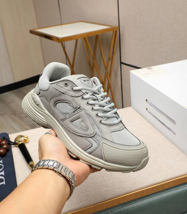 Dior's latest casual and stylish men's sneakers, a popular design with a simple and sophisticated look, perfect for trendy men. Featuring exclusive official website brand elements and original embellishments, imported cowhide leather with classic materials, fashionable and elegant accessories, and a durable, height-increasing TPU outsole for lightweight comfort. Sizes: 39-45, 46, 47. Custom orders accepted.