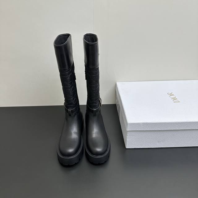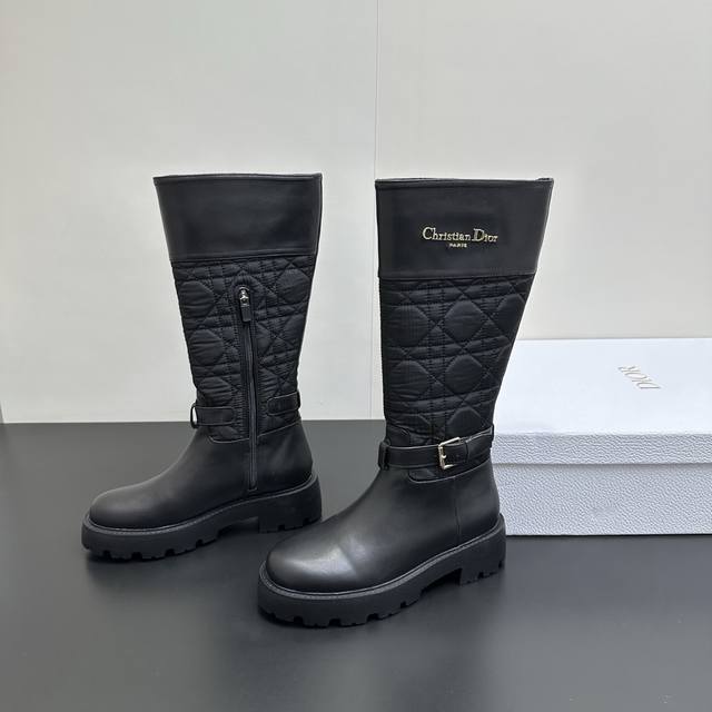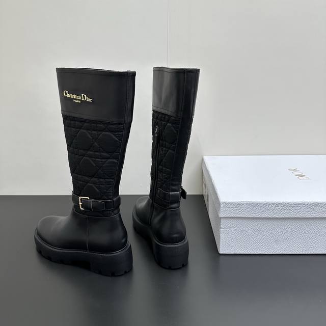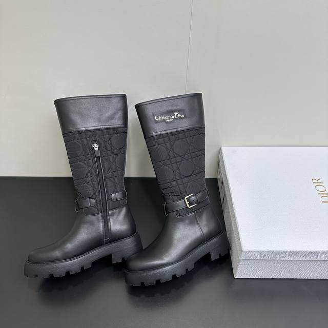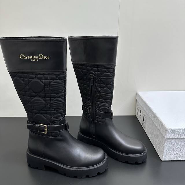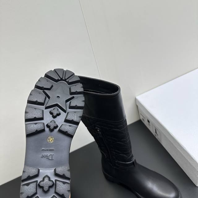Dior's latest Fall/Winter patchwork riding boots, highly recommended by celebrities and influencers. A stylish and trendy choice, these boots are both cool and chic. Not only are they visually stunning and instantly recognizable, but the embroidery adds a touch of sophistication! Made with fabric upper, imported top-grain cowhide, and mixed sheepskin lining. Features a non-slip, durable rubber sole. Original packaging included. Boot height 33cm, calf length 37cm. Sizes: 35-41. (