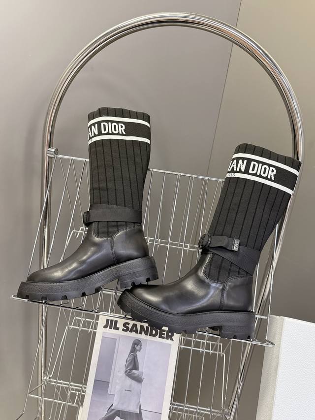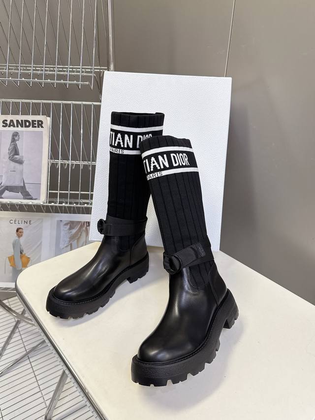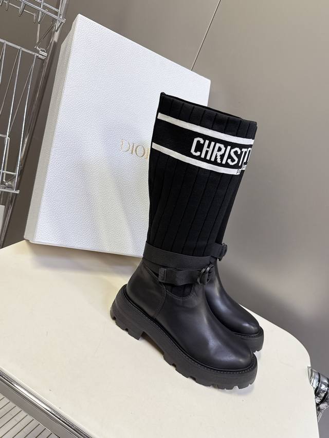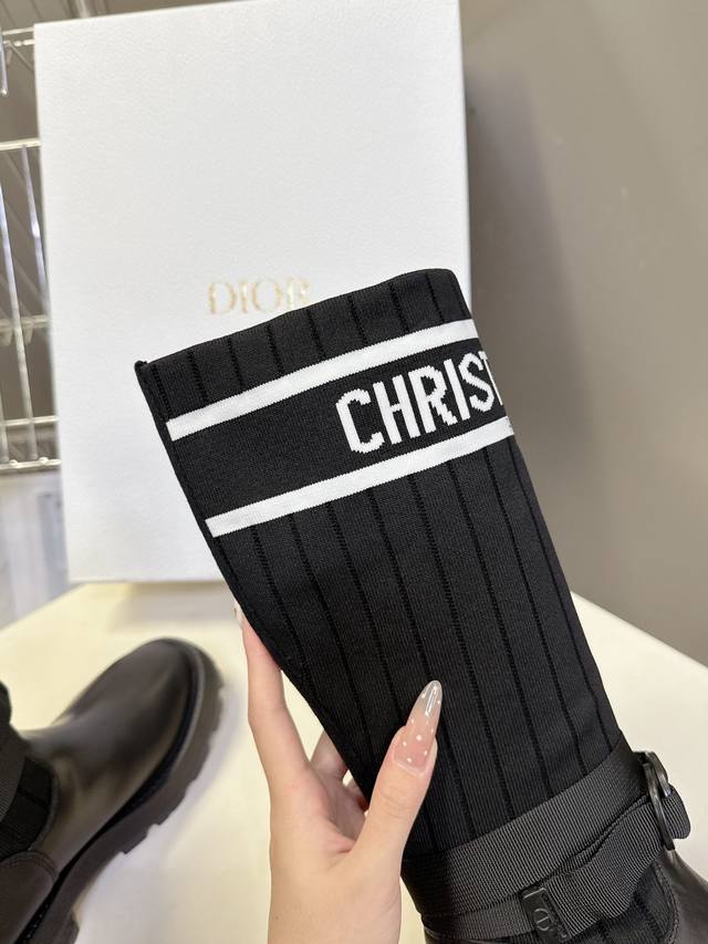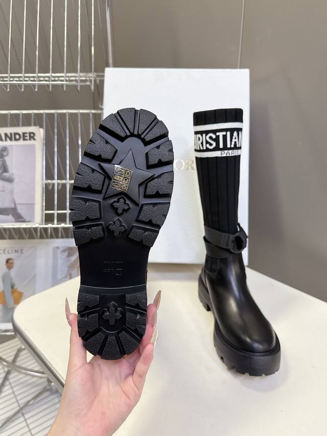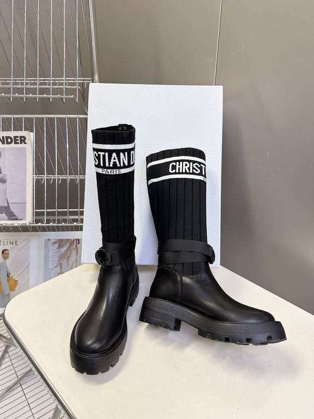 Dior's latest Fall/Winter riding boots, highly recommended by celebrities and influencers. Fashionable and trendy, these boots feature a simple design with intricate brand details. Super comfortable and stylish, they're not only visually stunning and brand-recognizable, but the embroidery also adds a touch of premium quality. Made with a flyknit upper, imported top-grain cowhide, and silk sheepskin lining, these boots feature a non-slip, durable rubber sole. Original packaging. Sizes: 35-41.