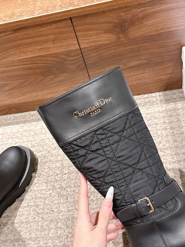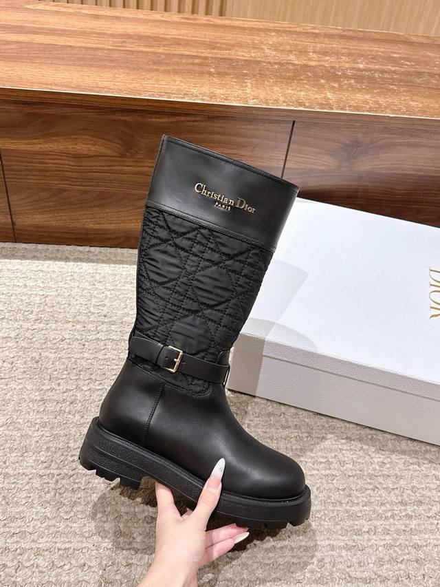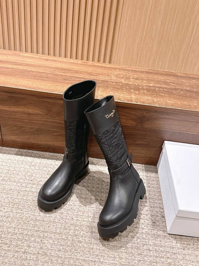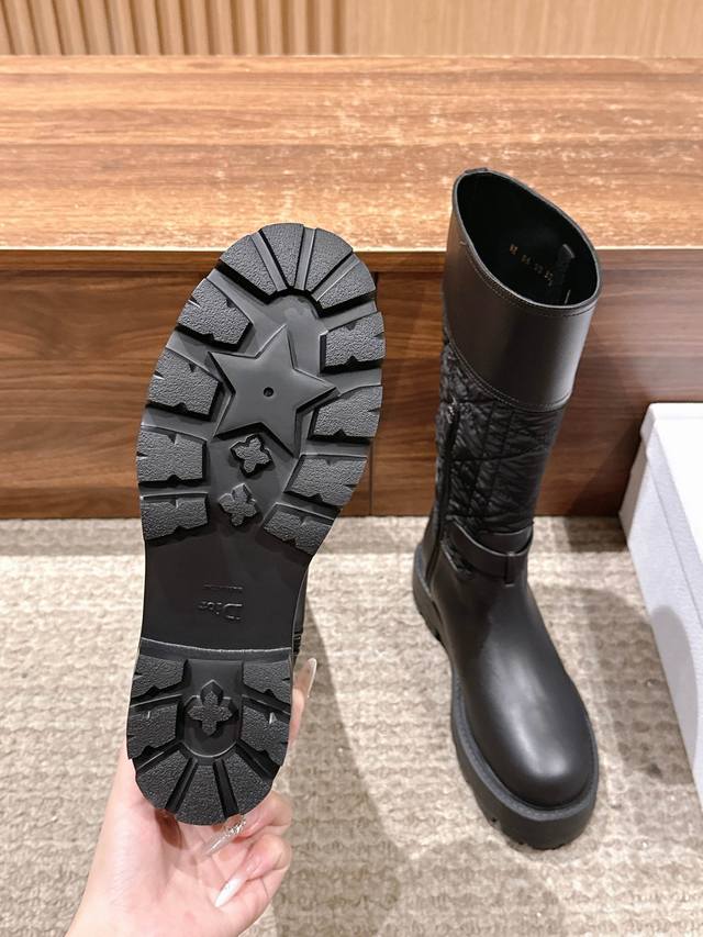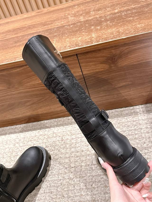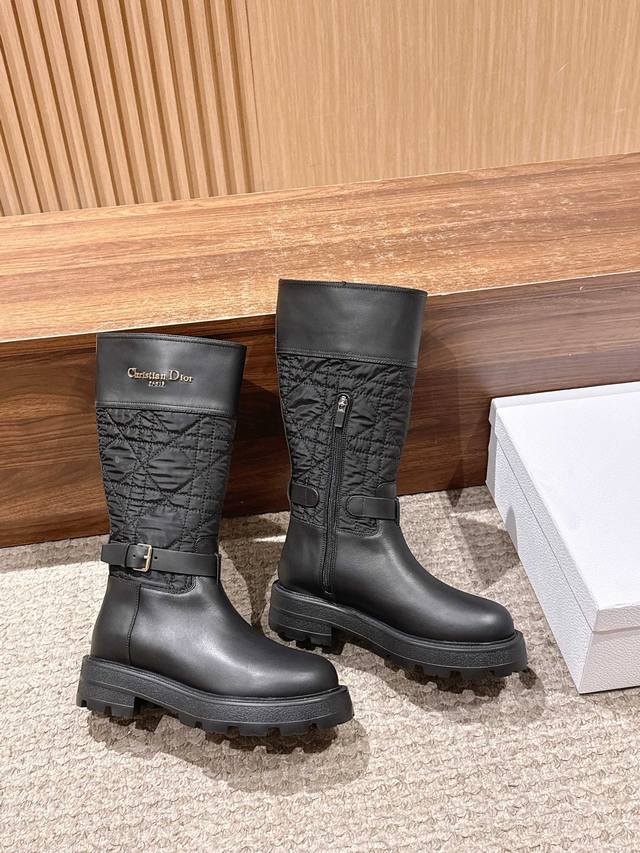 Dior's new autumn/winter combat boots are so beautiful! The combination of calfskin and down fabric, along with the cannage pattern, makes them highly recognizable. The boot shaft is soft, and the inner zipper makes them easy to put on and take off! The sole has a certain thickness, providing a good height boost. Size: 35-39 40 41 Custom orders are non-refundable/non-exchangeable.
