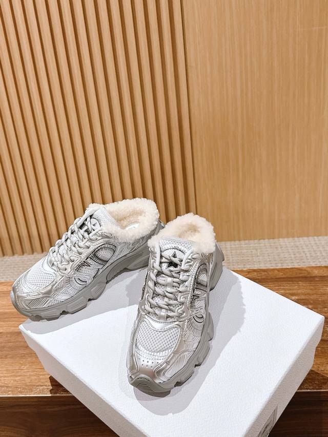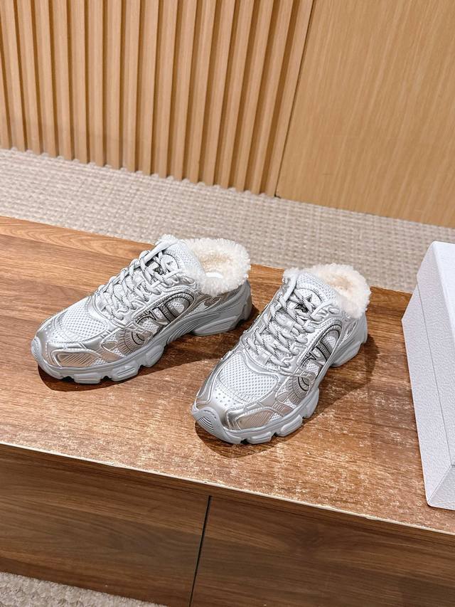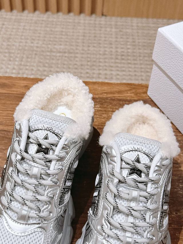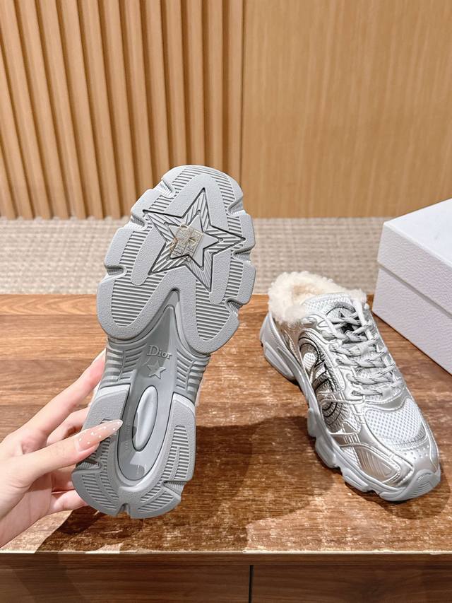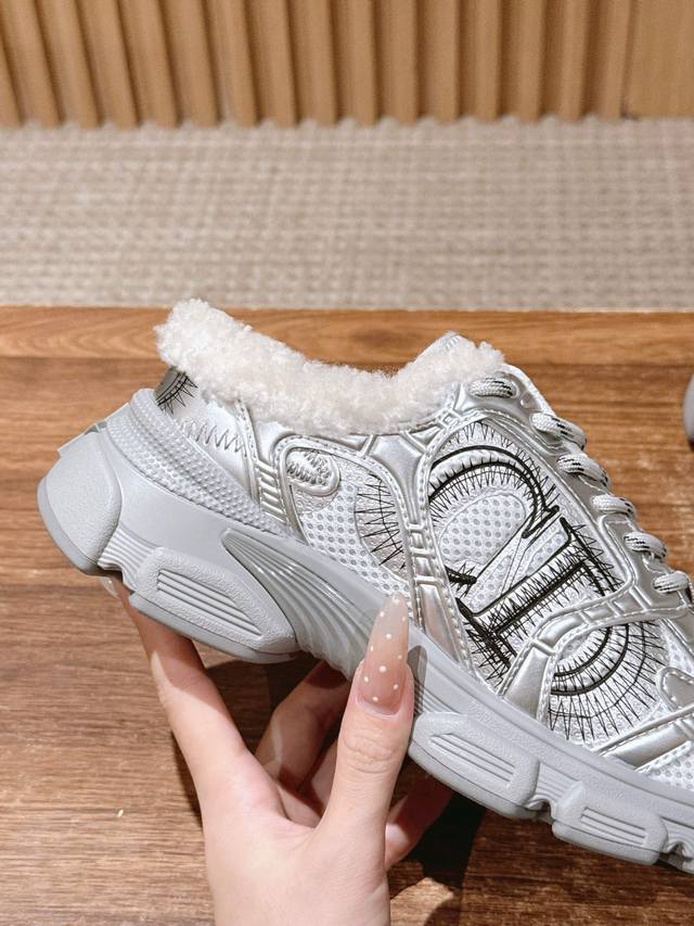 Dior's new plush chunky sneakers DDD The shoe features a chunky sneaker silhouette, combining breathable mesh fabric with a thick rubber outsole. The collar is padded with wool, offering both a trendy look and winter warmth. DDD The shoe has a rugged design and is available in multiple colors to suit both minimalist and individualistic styles. It blends the "trendy street style of chunky sneakers" with the "warmth of a plush lining," making it suitable for autumn and winter. It's versatile enough for casual occasions, and the thick sole design helps to optimize body proportions. DDD Upper: Cowhide DDD Lining: Wool DDD Outsole: Original mold outsole DDD Height increase: 6cm DDD Size: Men's sizes available upon request, main color can be ordered DDD Women's sizes 35-41, 40-41 (custom sizes, no returns or exchanges) DDD Men's sizes 39-45, 40-45 (custom sizes, no returns or exchanges) DDD