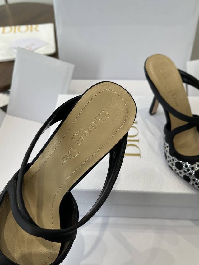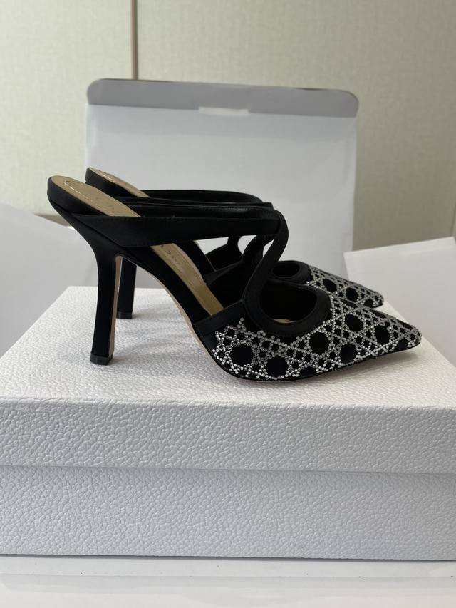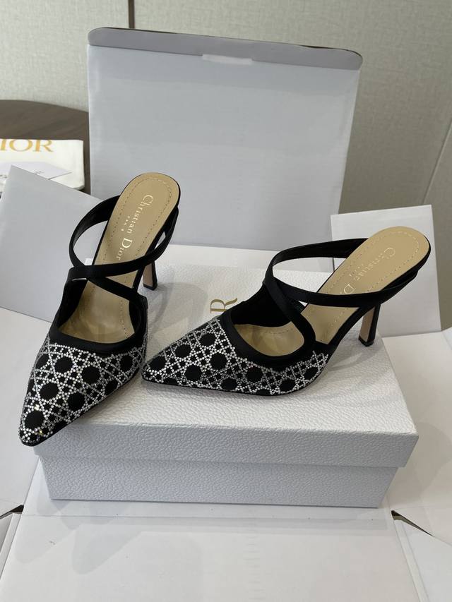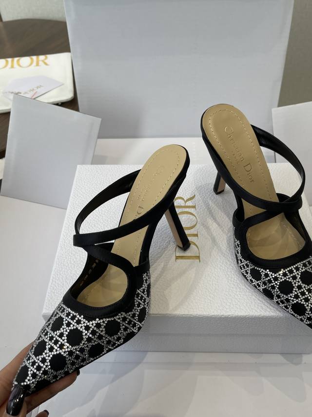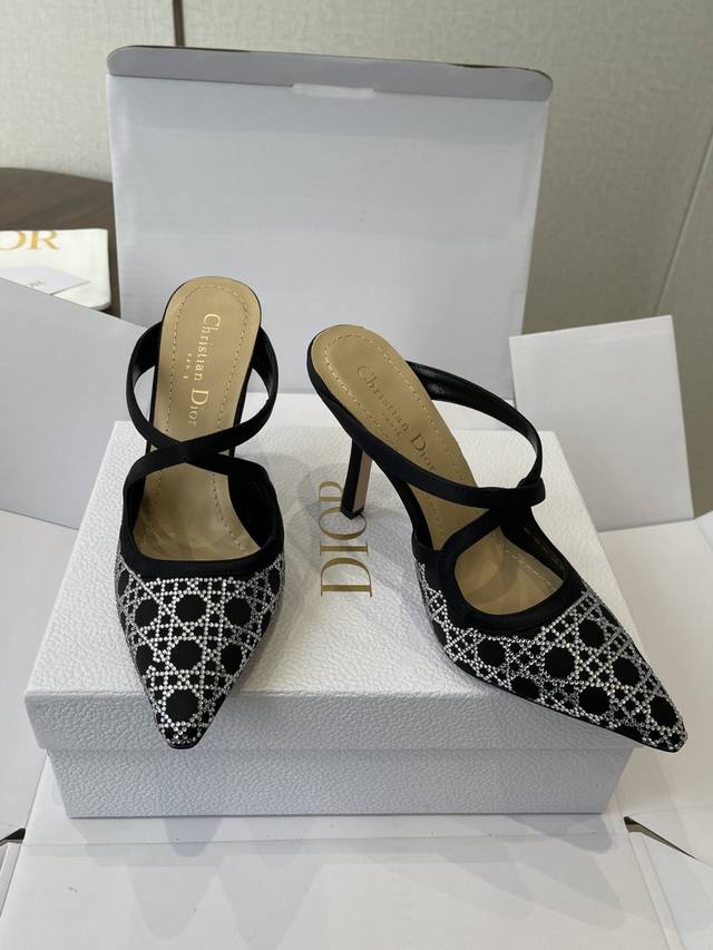 Dongguan-made Dior 25Ss Spring/Summer Runway New Tribales Series Women's Shoes Cd Celebrity Style Fashion Pointed Toe Rhinestone High-Heeled Mule Sandals Sandals Single Shoes DDD Material: Original Custom Imported Australian Rhinestones Original Mold Opening Mesh Imported Suede Water-Dyed Sheepskin Lining Insole Italian Genuine Leather Outsole DDD Heel Height: 9Cm DDD Size: #35-42 40 41 42 Custom Made, No Returns or Exchanges DDD
