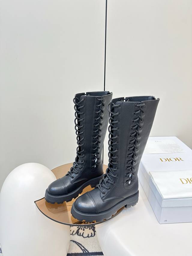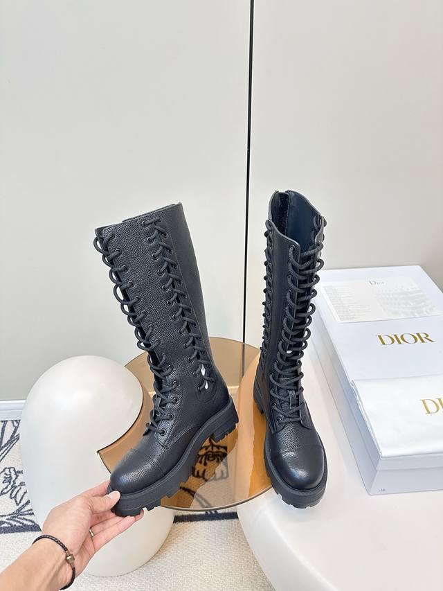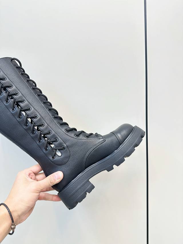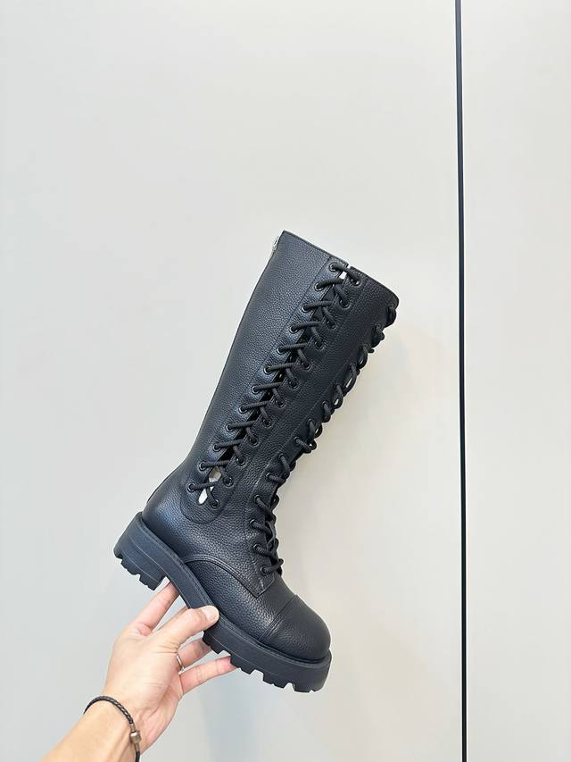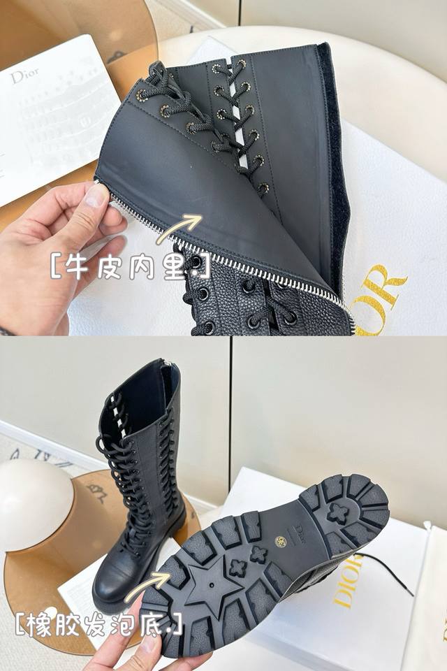 D-Road Boots, same style as Dilraba Dilmurat, lace-up Martin boots, mid-calf motorcycle boots. Jisoo's debut at the Paris Fashion Week. D-Road boots feature a hollow design and adjustable rope laces to fit various foot shapes! The heel design is cleverly crafted, providing just the right amount of height while ensuring stability and comfort while walking. Whether paired with simple jeans for a casual street style or with an elegant dress for an important occasion, it's easy to wear and perfectly embodies the essence of versatile fashion. Upper: Grain calfskin; Lining: Cowhide; Insole: Cowhide; Original molded rubber foam sole. Size: 35-40 [40.41 custom-made] .