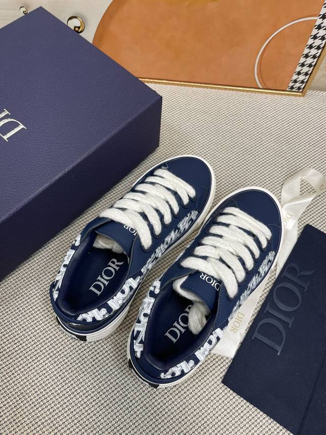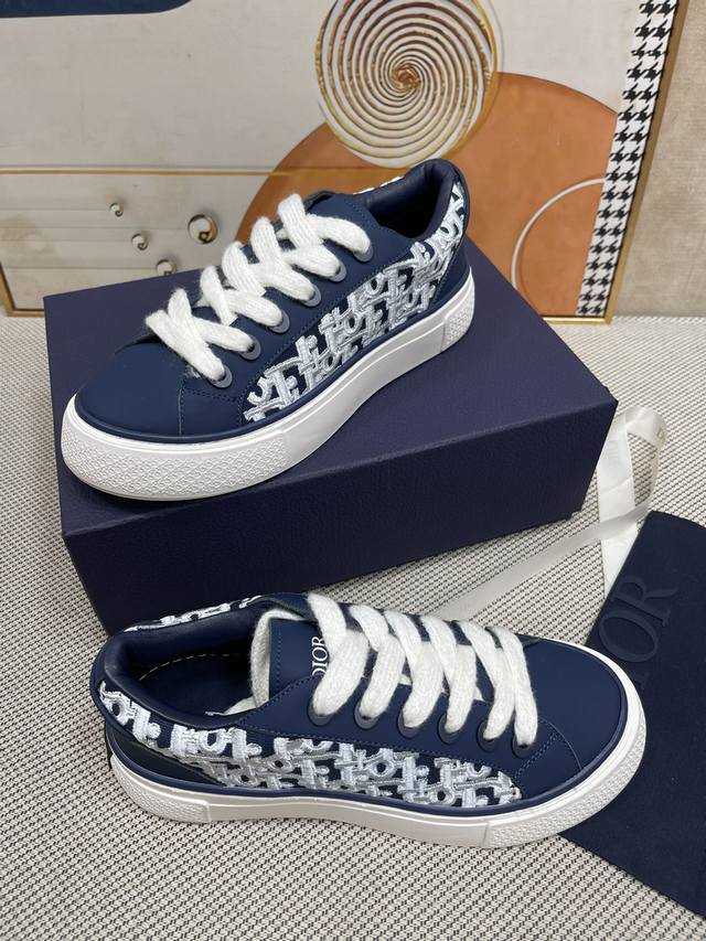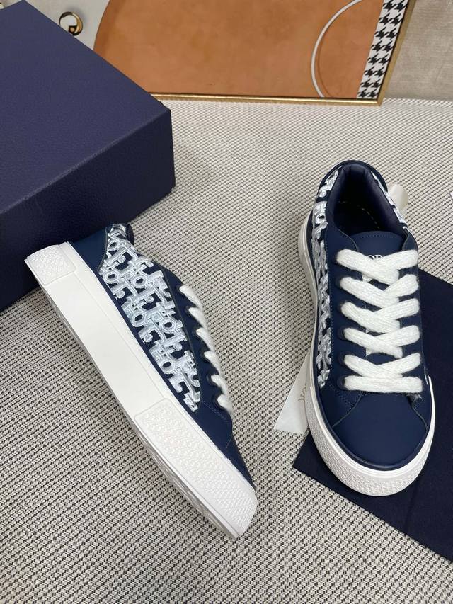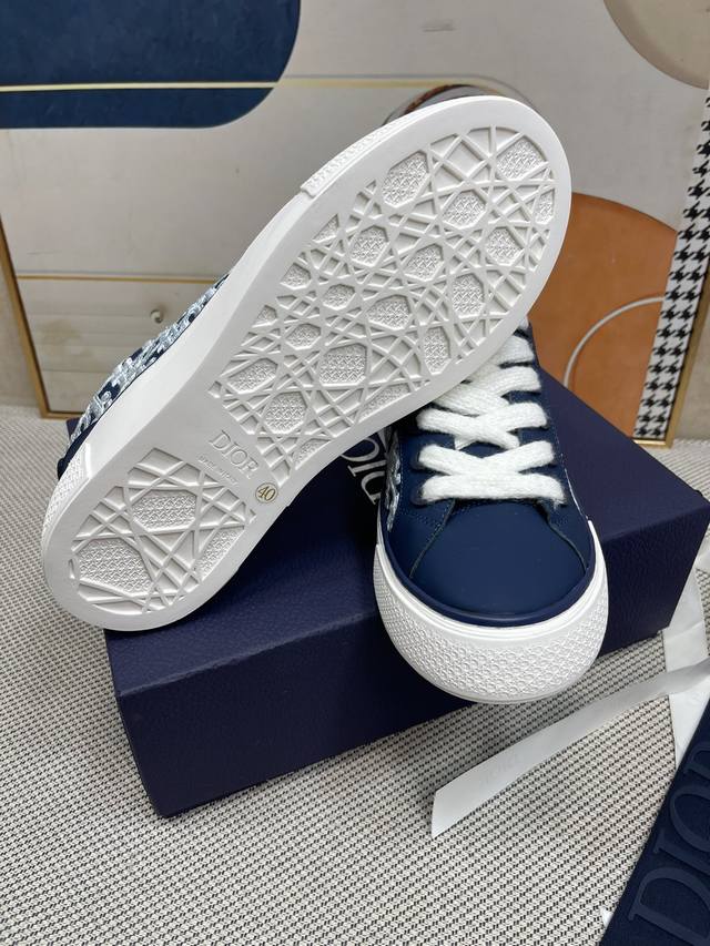 Embroidered Dio B33 Series - Top-Tier Version - Casual and Stylish Couple Style - Original Purchase and Developed - Made with Dior Grey Calfskin Leather, featuring a matching Diamond pattern canvas panel on the side. The iconic icon-shaped eyelets are subtly detailed, and the two-tone rubber sole, tongue, and heel are adorned with distinctive details, making it a very sophisticated and versatile shoe. Material: Imported calfskin + Oblique monogram fabric. Lining: Custom breathable lining. Outsole: Original molded TPU combination outsole. Sole thickness: 3cm. Sizes: Women's: 35-40; Men's: 38-45. Women's 41, Men's 38, 46 are custom-made and non-refundable.