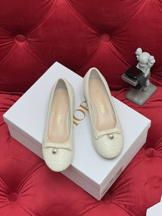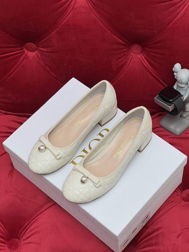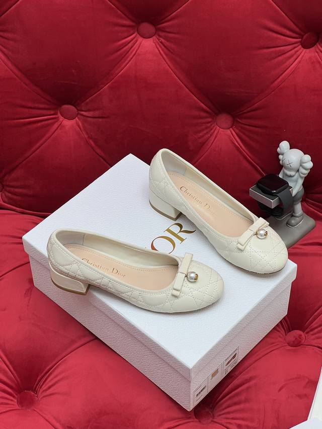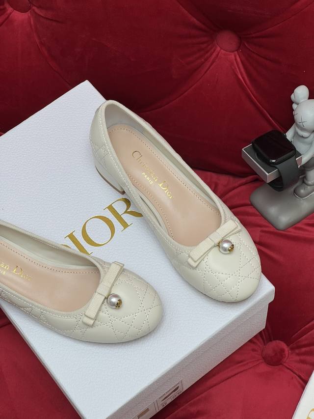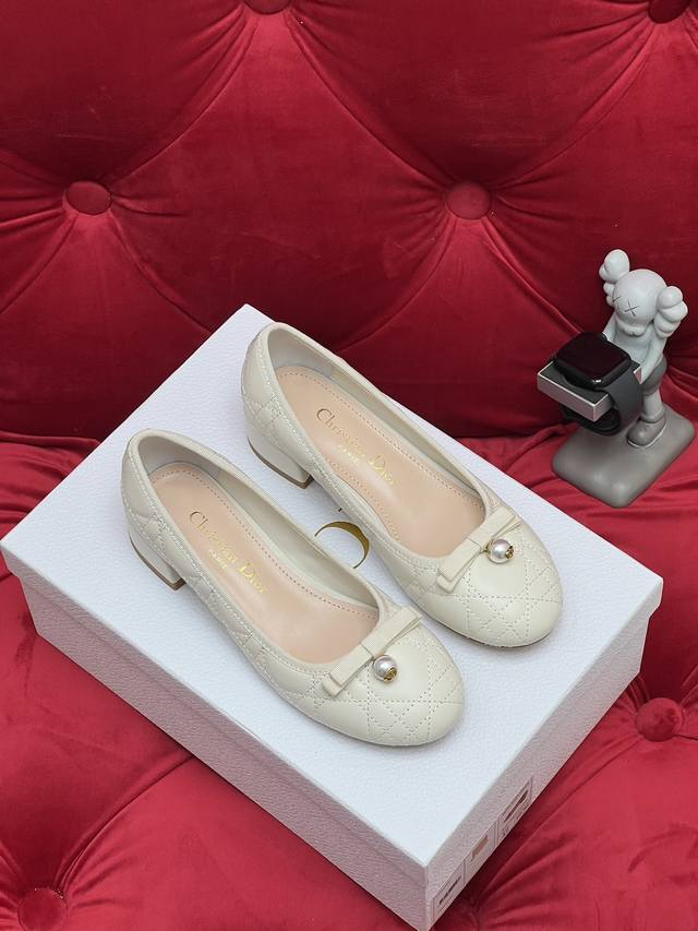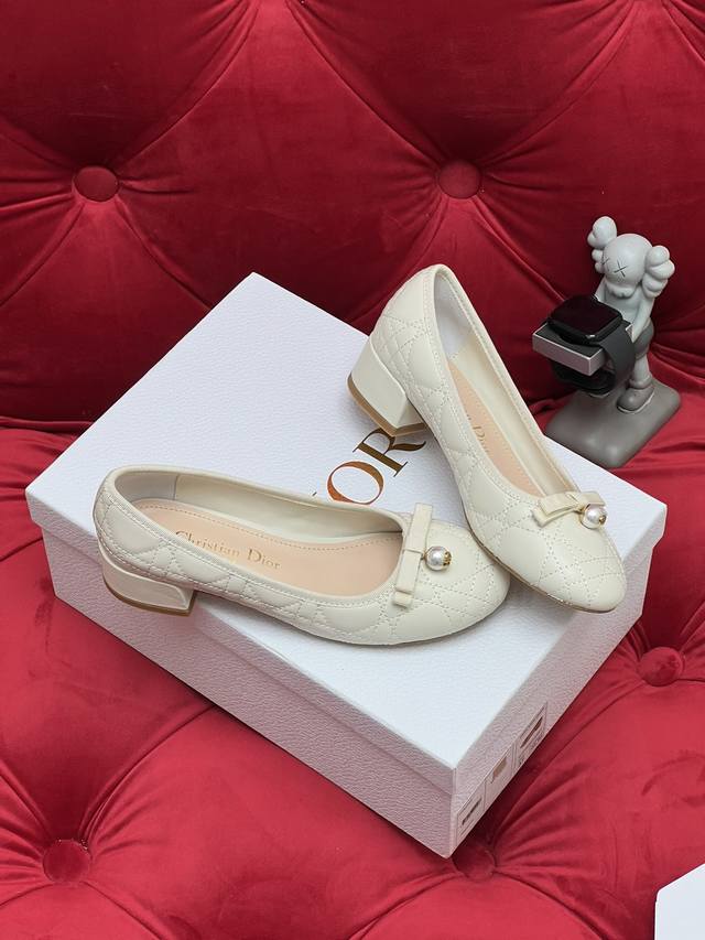 Exclusive Real Shot Top Version #Dior 24Ss Spring/Summer New Pearl Single Shoes,