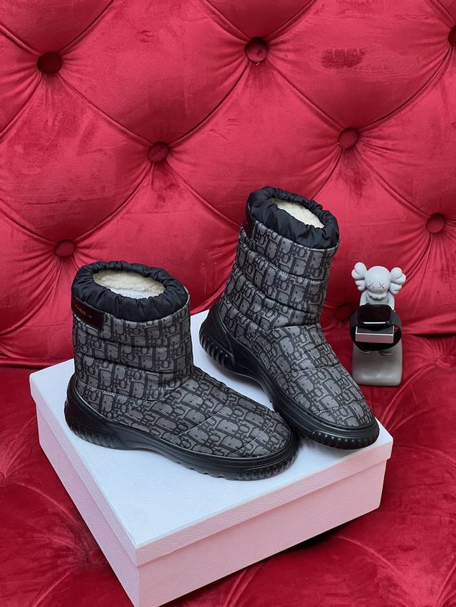 Exclusive Real Shot Top-Tier Version Dioralps 2026 VS Fall/Winter King of Snow Boots Fully Upgraded DDD Chubby and Adorably Cute From the Dioralps Limited Series Unique Shine Nylon Oblique Print Upper with Interwoven Designs for an Ideal Fit Boot Shaft Technical Fabric Short Boot Fit Suitable for Urban or Mountainous Areas, Makes Legs Look Slimmer, Adds Height, Keeps Warm and Stylish Boot Shaft and Sole Use Original Waterproof Padding Lining Original Full Packaging DDD Fabric: Original Custom Technical Jacquard Fabric DDD Lining: Original Custom Pure Wool DDD Insole: Original Custom Pure Wool DDD Outsole: Original Molded Rubber Foamed Sole DDD Size: 35-39 40.41. Customized, No Returns or Exchanges DDD
