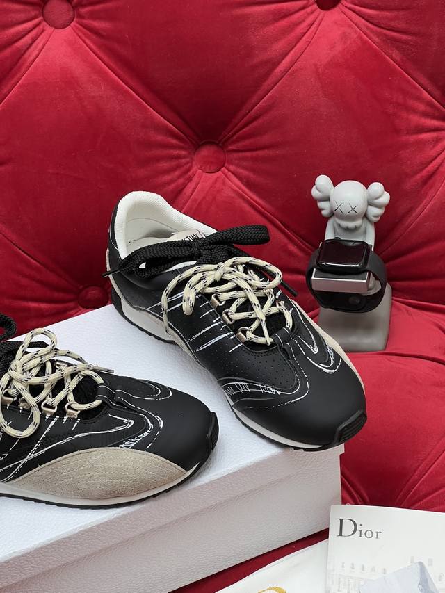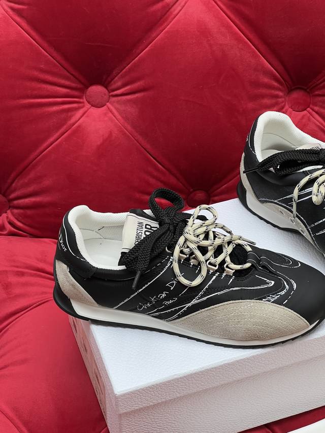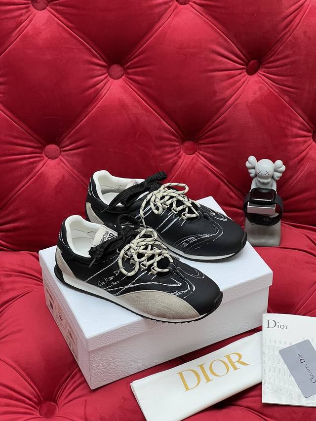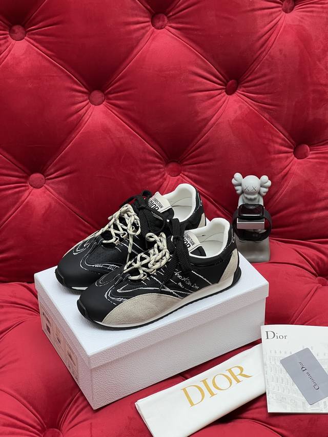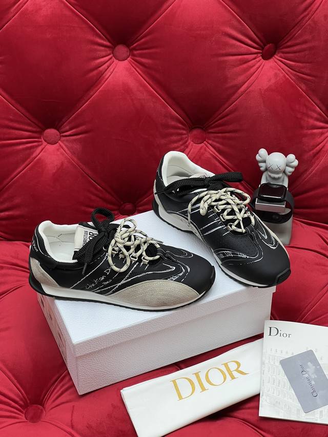 Exclusive Real Shots Top-Tier Couple Style Dior 25Ss Latest D-Sketch Graffiti Casual Sneakers Spring/Summer Ready-to-Wear Collection Showcase, Showcasing Classic Retro Aesthetics. Sides adorned with handwritten Christian Dior Paris logo, heel and tongue embellished with Christian Dior Paris logo inlays and labels. Material: Cowhide and Nylon patchwork. Lining: Original breathable mesh. Outsole: Original two-tone rubber sole. Size: 35-45. Women's 40.41 (made to order), Men's 45 (made to order, no returns or exchanges).