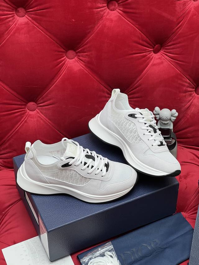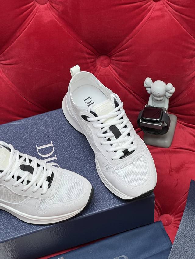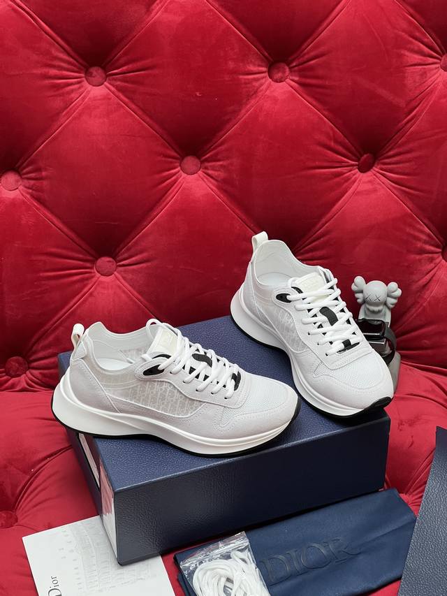 Exclusive Real Shots Top-Tier Version Dior Classic Series B25 Runner Sneakers DDD The sole has been upgraded, the fabric upgraded, and the comfort comprehensively upgraded! This dynamic sneaker features the iconic black Dior Oblique print panel on the upper, paired with white mesh fabric and black suede trim. Perfect for everyday wear or formal evening wear, easily creating different styles. Every detail has been optimized for perfection. Available year-round in stock. Beautiful packaging included. Fabric: Original custom Oblique print fabric. Lining: Custom imported microfiber. Sole: Exclusive molded ultra-lightweight foam + TPU. Sole thickness: 3.5cm. Size: Men's 39-45, Custom 38, 46, 47.