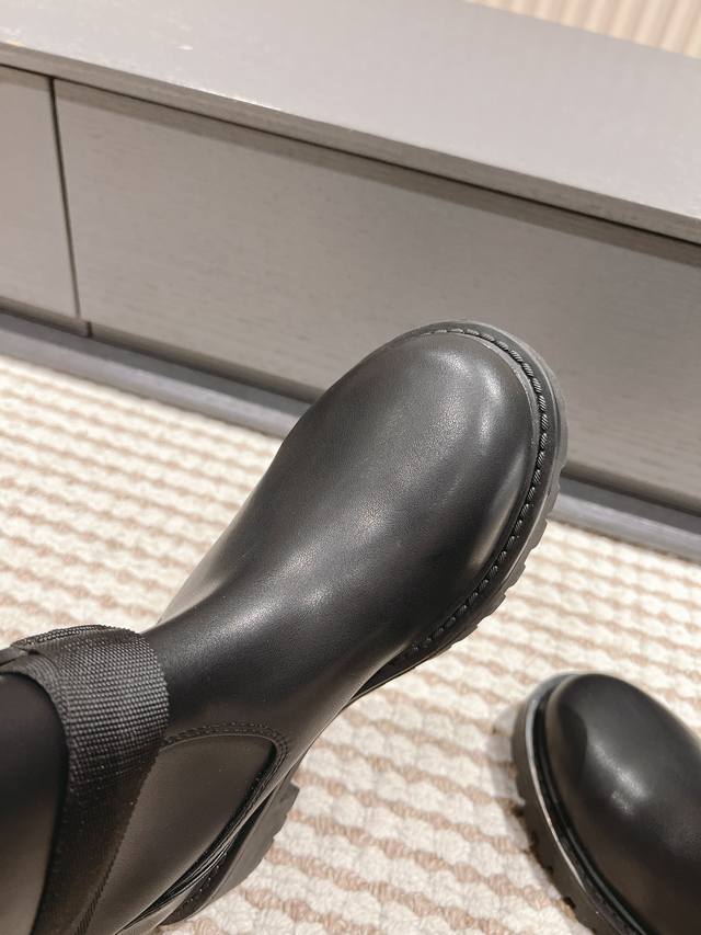The D-Major boot features distinctive design elements for a striking look. Crafted from black technical fabric and cowhide leather, it's easy to slip on and off. Inspired by the Dior Book Tote handbag, it's adorned with a two-tone "Christian Dior" logo on the top. An adjustable nylon strap with a "Cd" logo and a rippled rubber sole set the tone for the eye-catching silhouette.