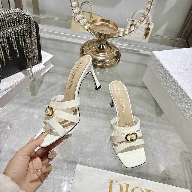 Factory direct. Dior 2026 Spring/Summer New D-Club Jelly Color Hollow-out Cross Strap Heel Pearl Women's Shoes Cd Logo Hardware Buckle Flat Round Toe Open Toe Sandals. Two different options are available. Comfortable and casual for everyday wear, high-heeled and fashionable, full of femininity. Heel height is about 7.5cm. Italian genuine leather sole. Sizes: 34-41. 34, 40, 41. Custom orders are non-refundable and non-exchangeable.