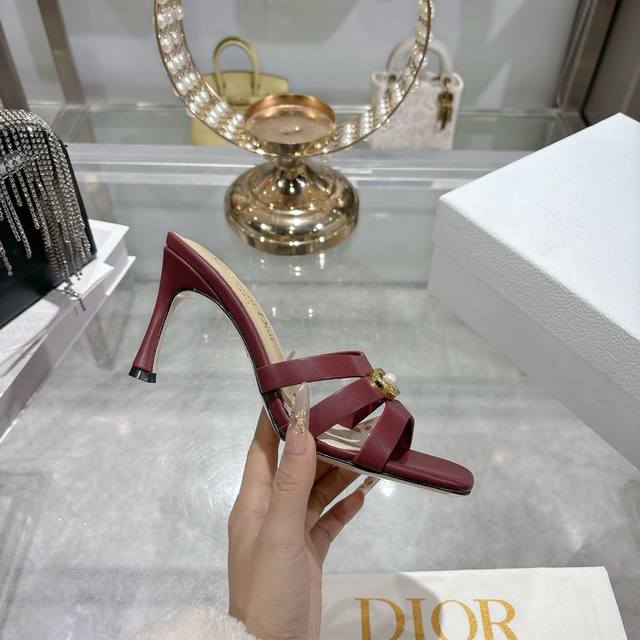Factory direct. Dior 2026 Spring/Summer New D-Club Jelly Color Hollow-out Cross-strap Heel Pearl Women's Shoes. Cd Logo Hardware Buckle Flat Round Toe Open Toe Sandals. Two different options are available. Comfortable and casual for everyday wear, high-heeled and fashionable, full of femininity. Heel height is about 7.5cm. Italian genuine leather sole. Sizes: 34-41. 34, 40, 41. Custom orders are non-refundable and non-exchangeable.